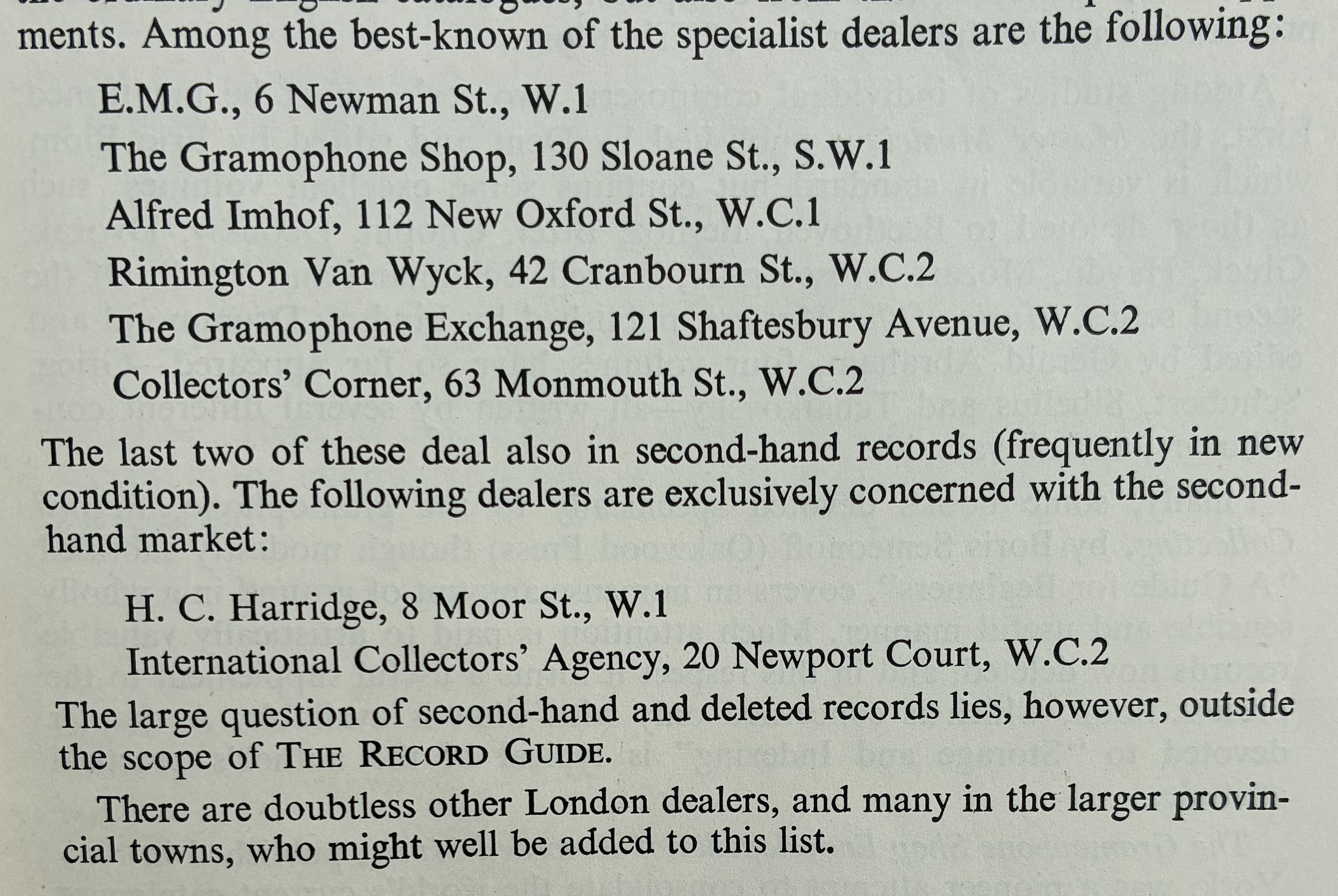Only a few shops are recommended, all in London. I daresay all all long gone now, though older readers may remember some?