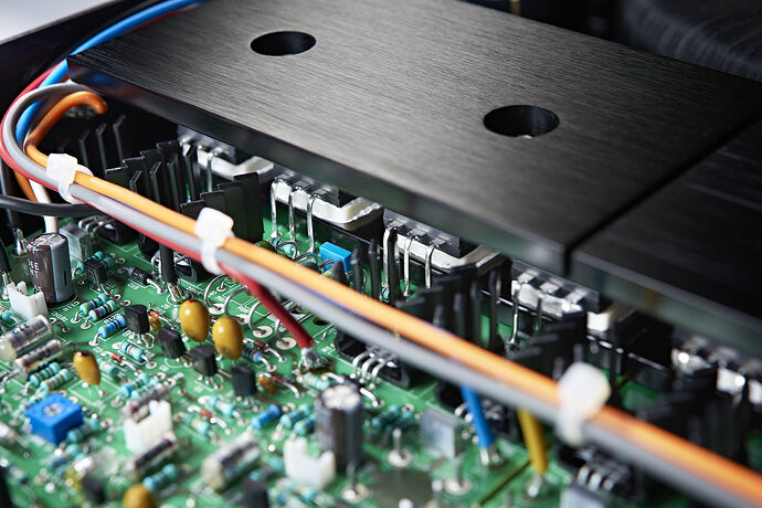 The main difference internally can be seen around the main transistors which are just under the large black heatsinks in the lower picture above.