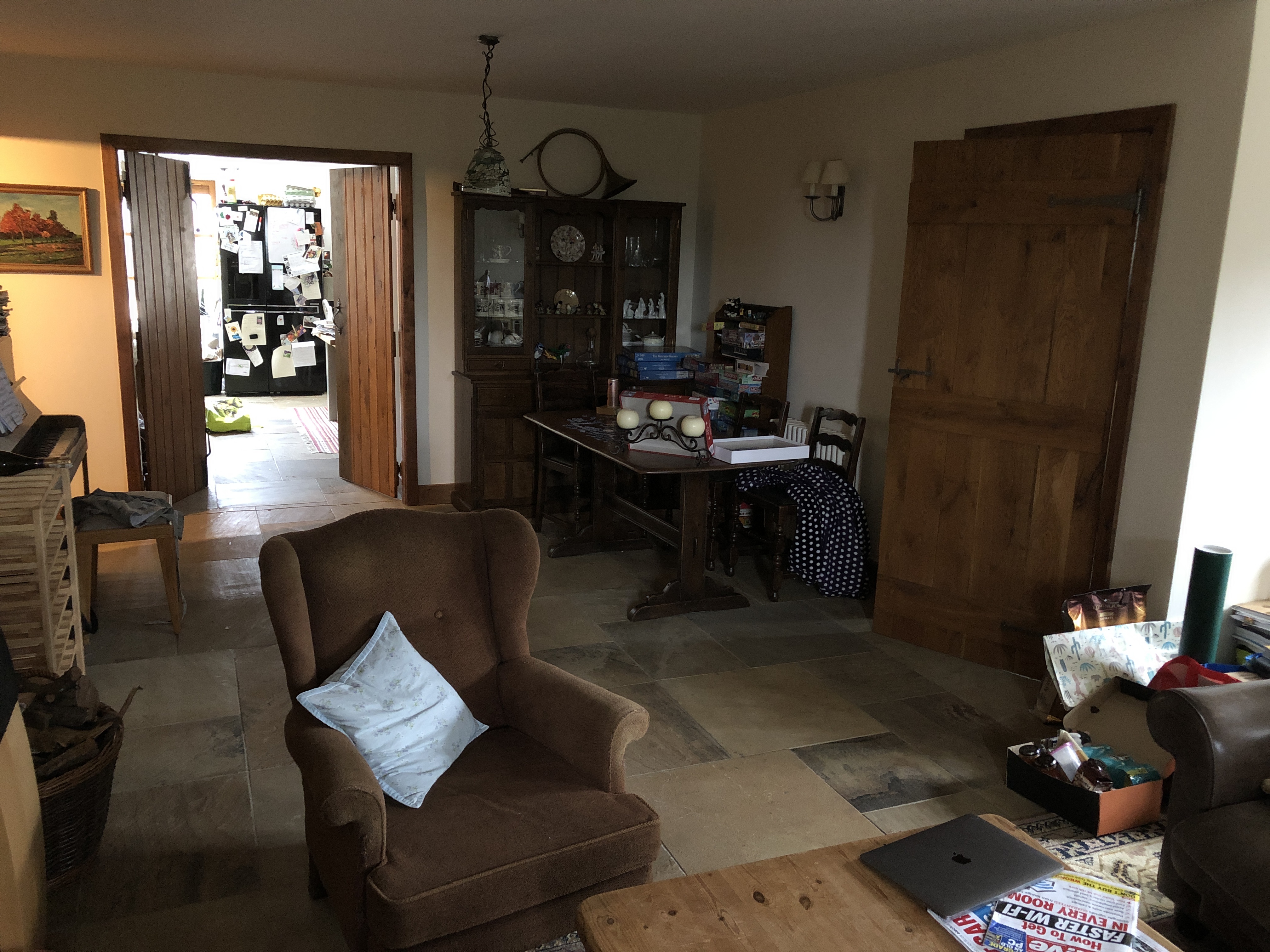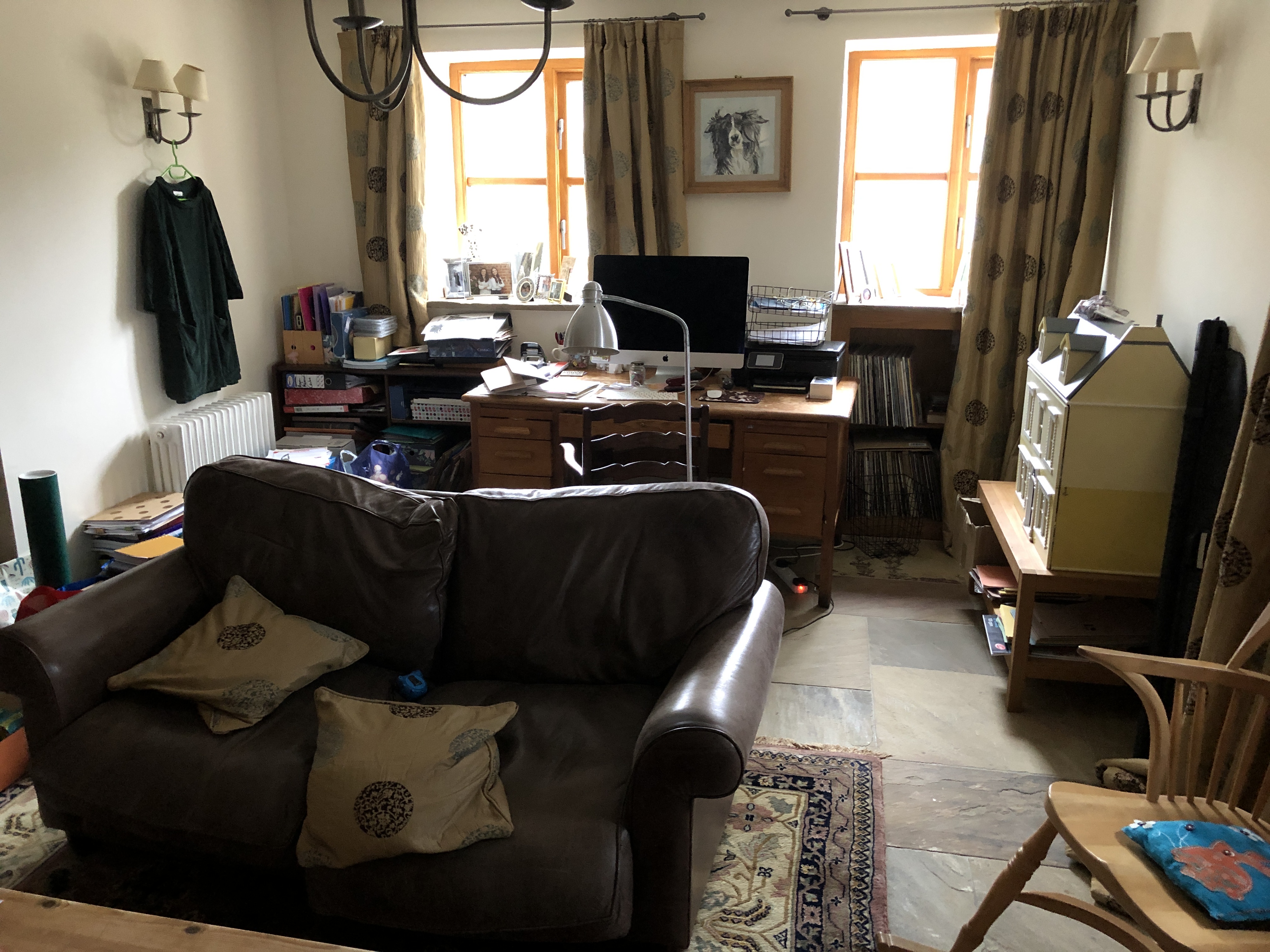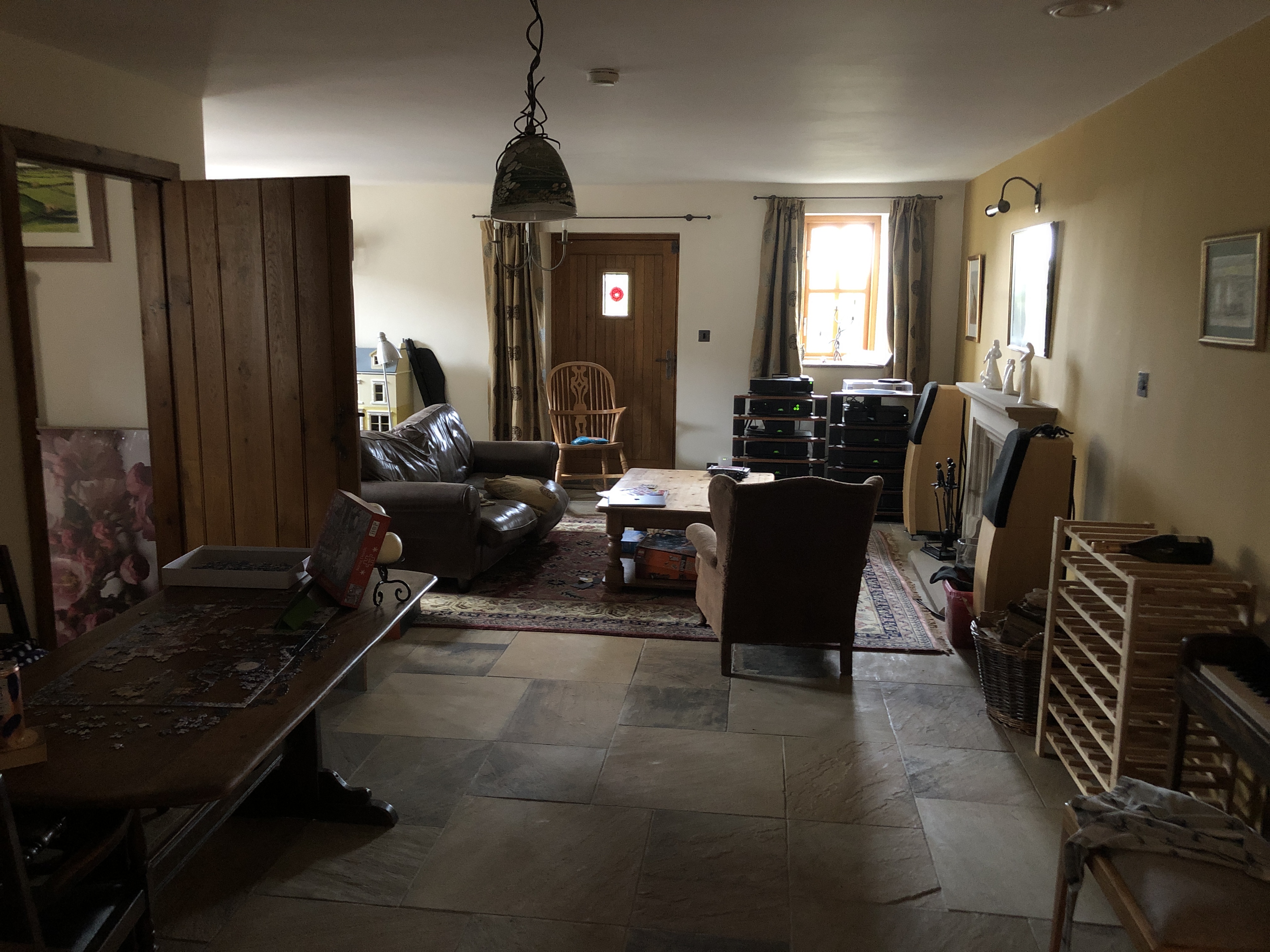 It seems pretty good acoustically despite the stone floor tiles - the irregular shape helps and there is a fair bit of furniture and heavyish curtains. At the moment the my ears when sitting on the listening sofa are about 10 feet from the front of the speakers. There is a bit of scope to move the sofa back a foot or two but then there is a desk