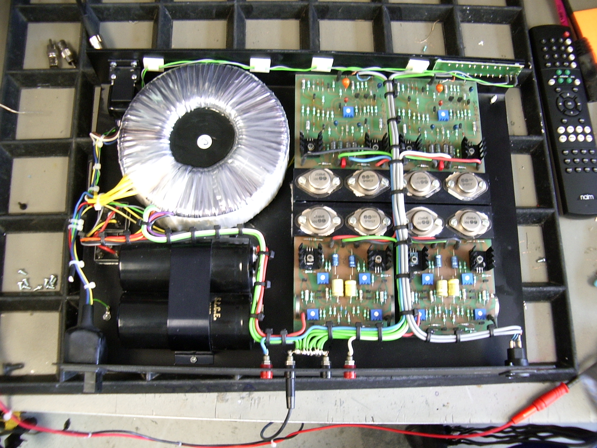It looks OK, until you start noticing that little details are not quite right; The soldering quality is not up to Naim standard; cable ties aren’t quite as they should be; and then we realised the biggest difference of all - the chassis was scratch built but the alloy plate used was ever so slightly too thin, so in the event of a fault the thermal protection would not work properly.