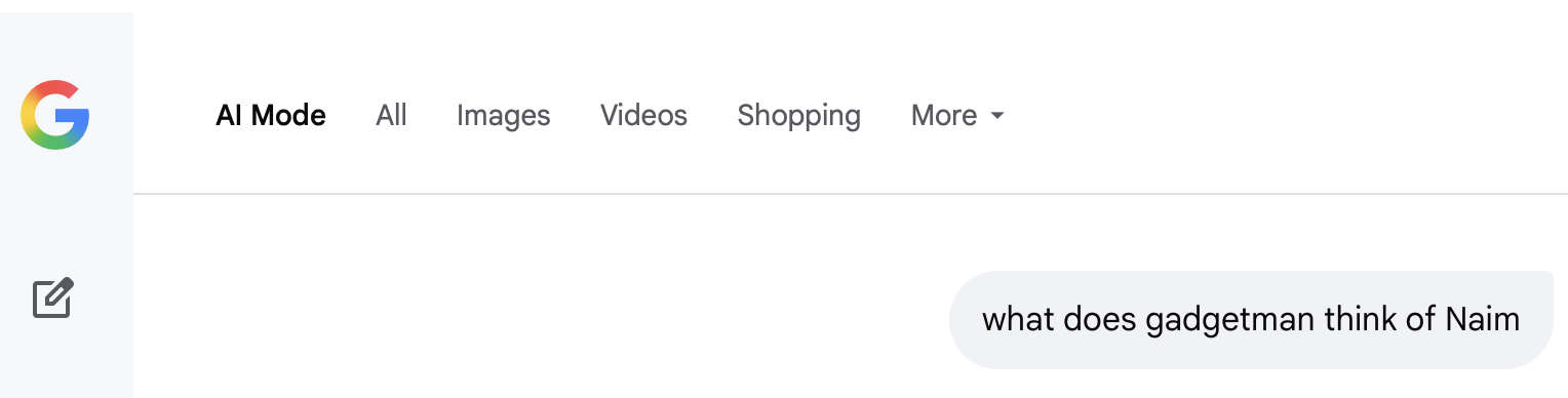 But which AI? From terminology guess the OP used Google. Here’s Google AI’s response to the same question for some entity called Innocent Bystander: What does “Innocent Bystander” think of Naim?