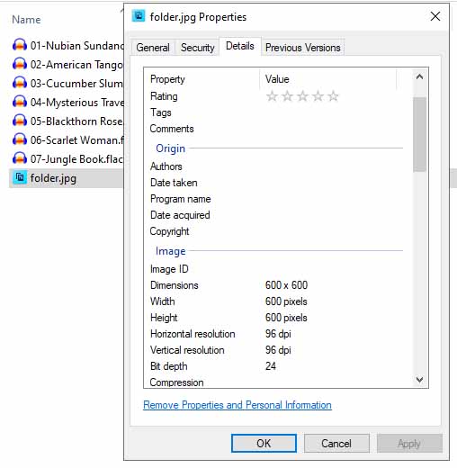 If you right-click on a folder.jpg or a downloaded file and select properties you will see it.