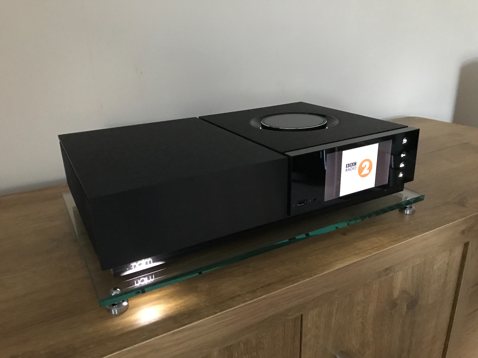 I tried glass and Fraim cups and balls, and it made no appreciable difference. I also tried “everyone’s favourite” IsoAcoustics isolators and they ripped the sound apart. In the end I just left it on the little wooden table.