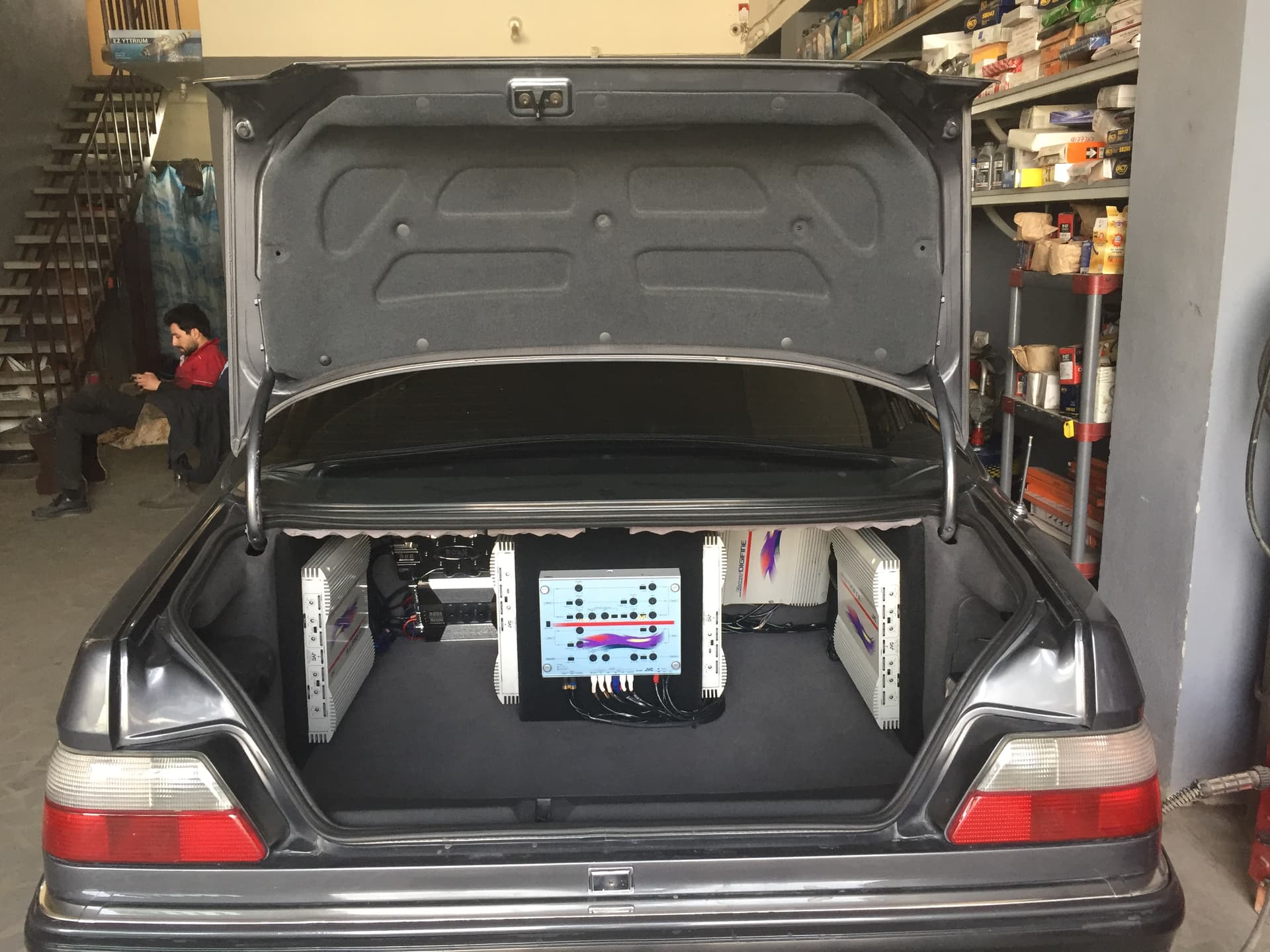 In car system is JVC legacy system with 5 amplifiers and a crossover.