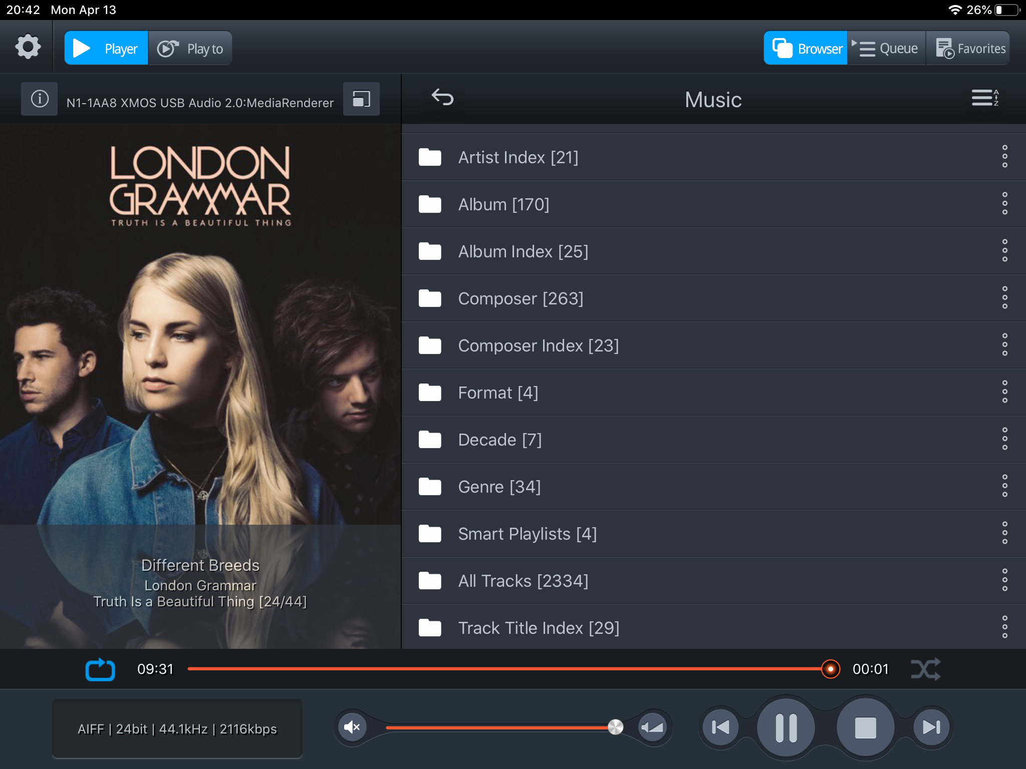 I turned on Twonky and disabled MiminServer to see how the Melco app displays the library.