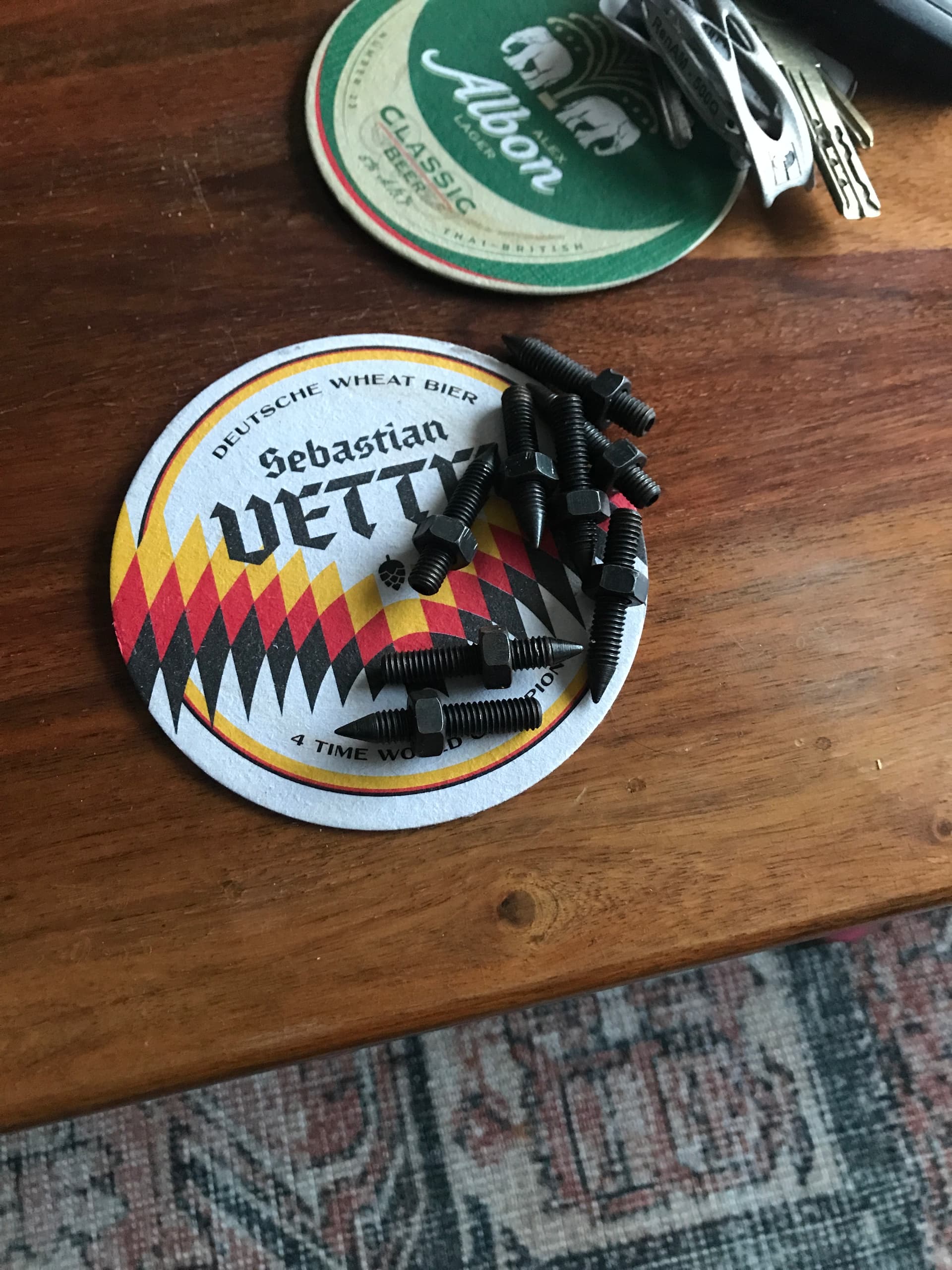 Also, I’ve got these spikes. Mileage in making up some small speaker plinths with them?