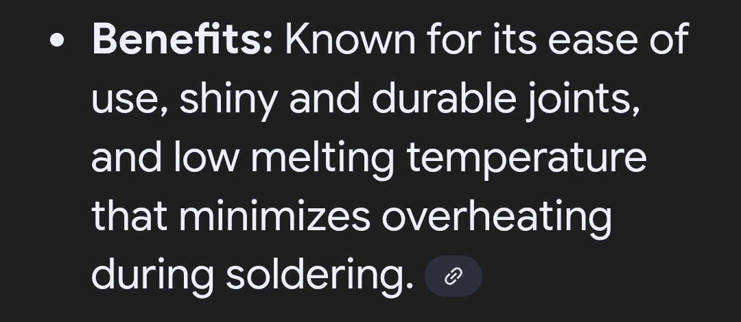 You can of course ignore the advice, but that is why we have specialist flux products to use with low temp and regular resin core solders across a range of alloy ratios when using larger higher heat sinking conductors or very fine conducting pads such as with manual surface mount⦠to allow the best wetting, bonding and conduction between larger surfaces or tiny surfaces with minimal heat⦠with good resistance to oxidisation and brittleness over time