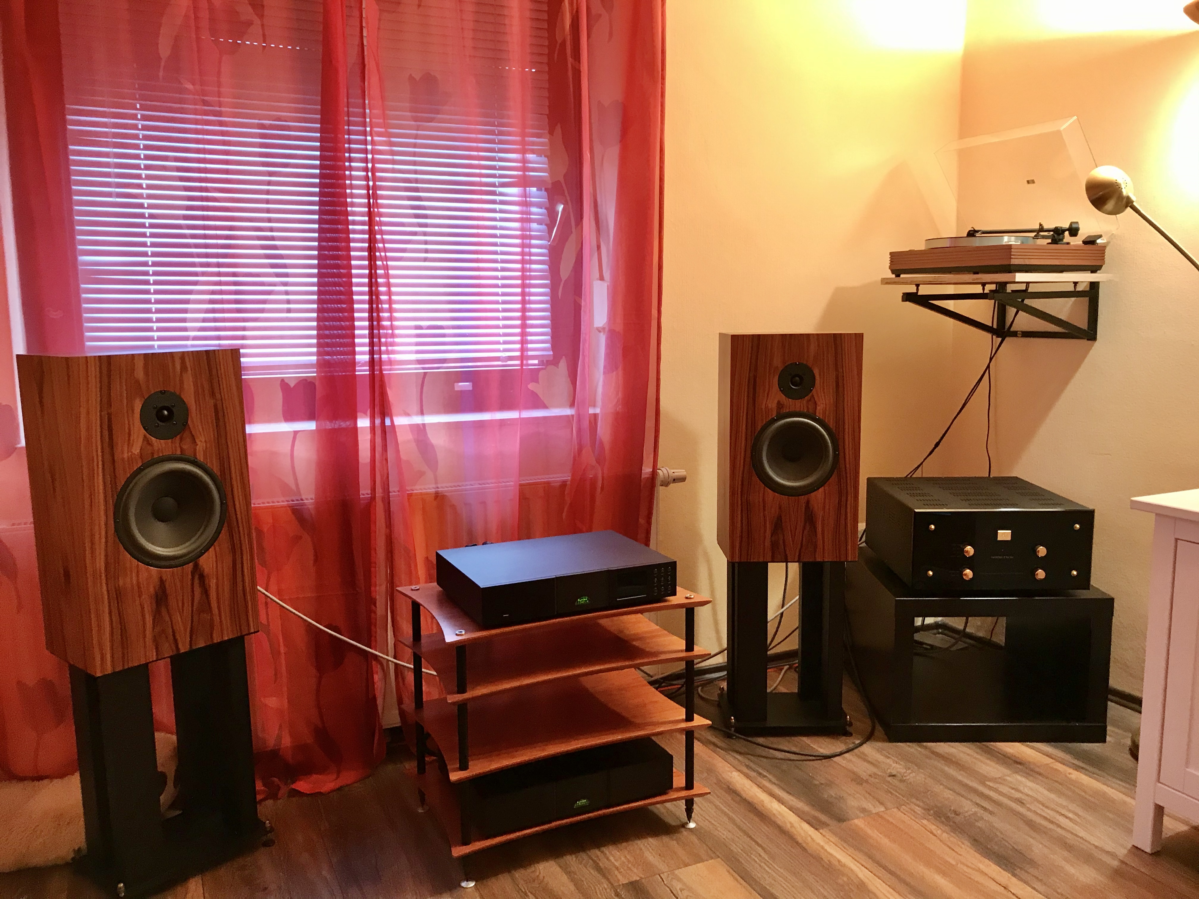 For now, they are placed on weighted feet Atacama HMS1.1, although too high, it is a good improvement compared to the Linn Sara Stands.