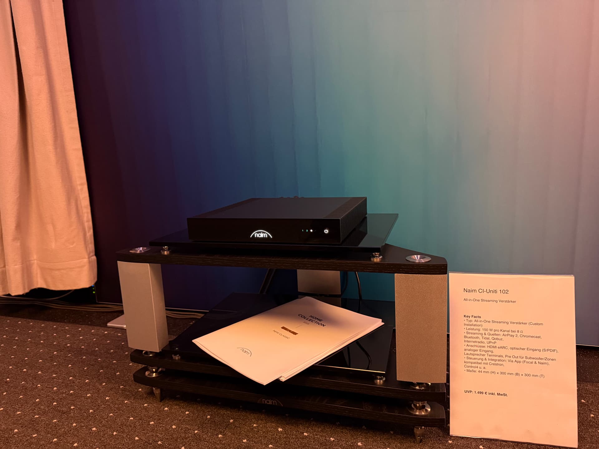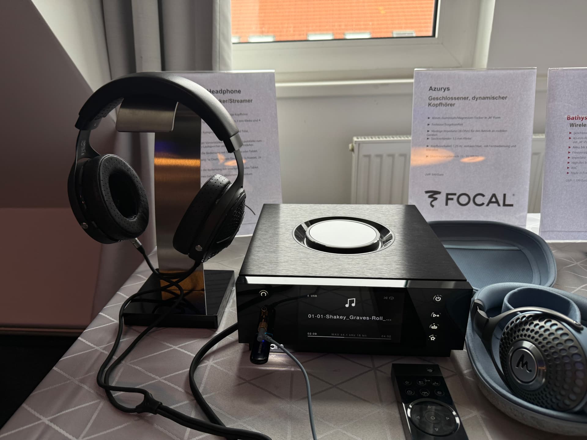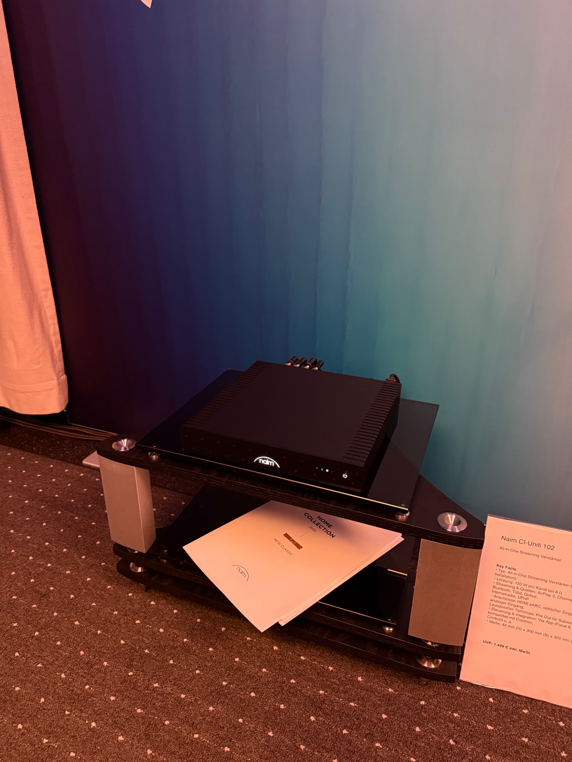 Today in Leipzig I started with Naim/Focal on the 4th floor. They had divided the space in section with some products on display like the new classic series, and the Naim Uniti Headphone Editions with several Focal Headphones and a small Naim Focal system in the other section. The speakers were the Focal Aria Evo X Nr. 1 driven by the Naim CI Uniti 102.