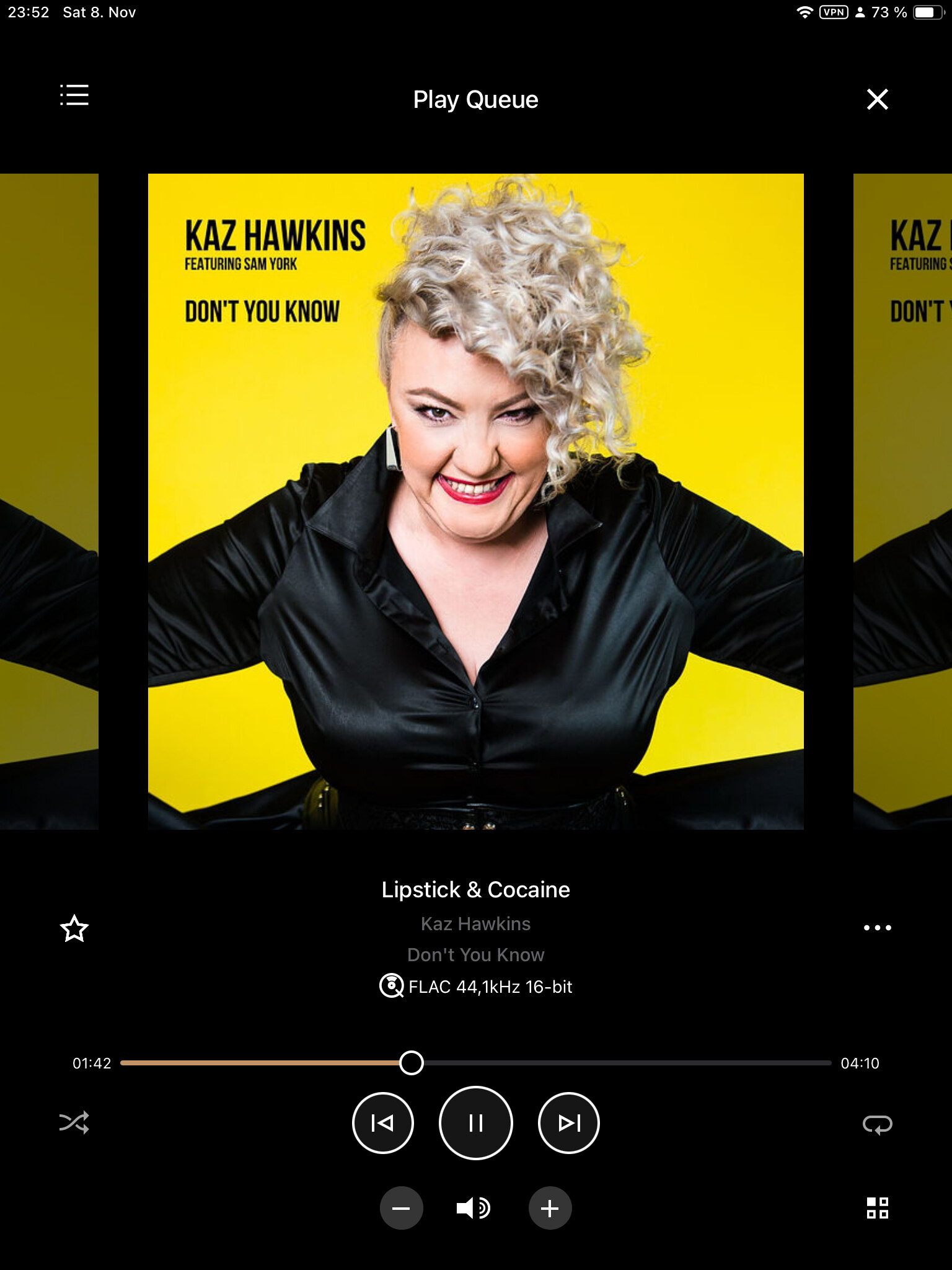 Anette Askvik - afraid that I will hear this one multiple times today, some freshness for shows would help. One can predict what you at least will hear in a day…Misding the depth I am used to, and the edges of the sax etc…, soundstage is however decent.