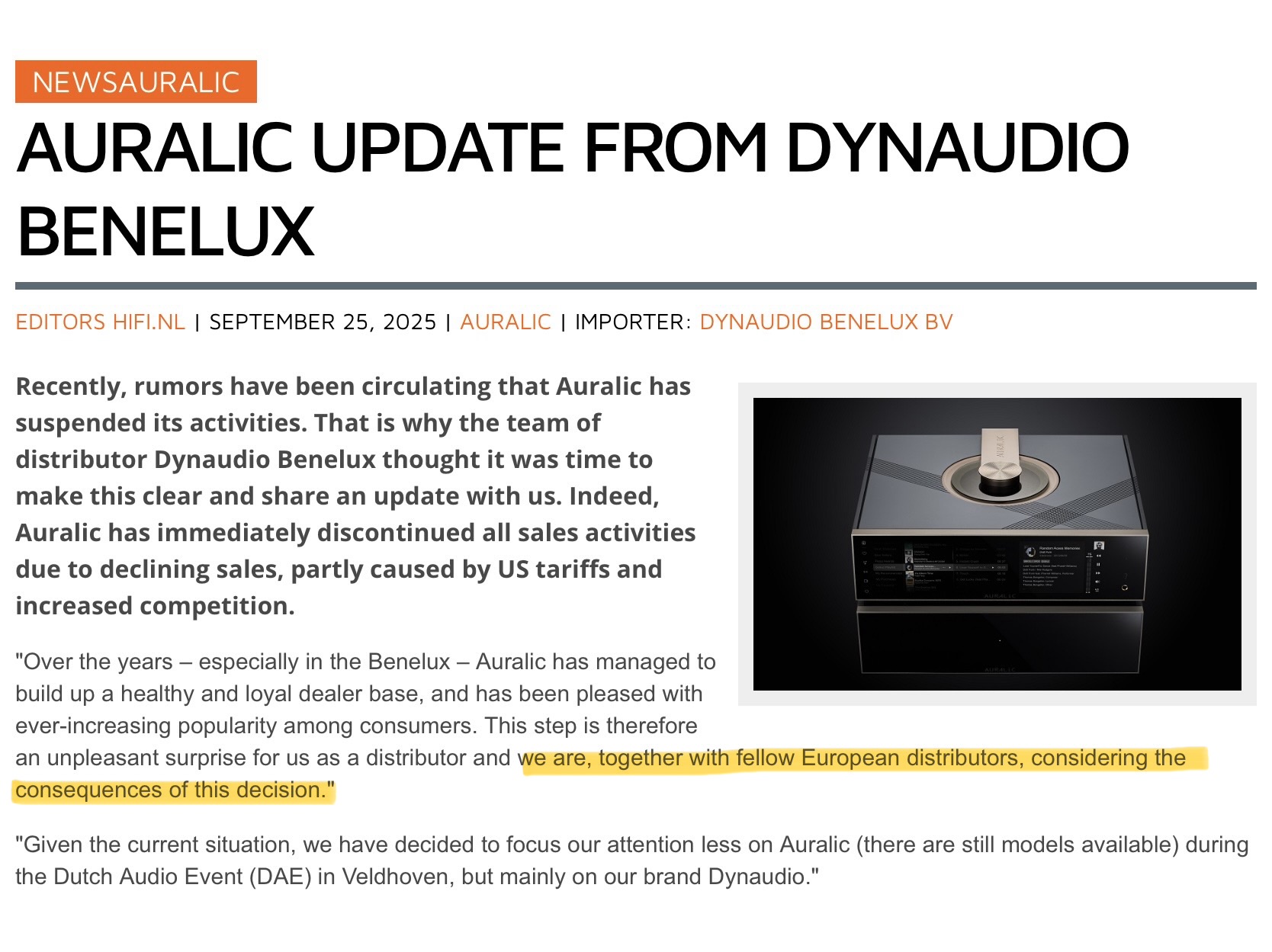 This is very sad. While I have not seen, heard, or owned any Auralic products, they always seemed like good things, nicely designed and made. A lot of people are going to be very unhappy.