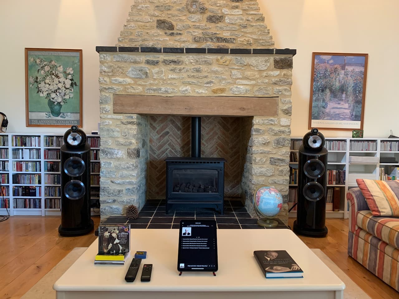I think they look better from above or from the side, when the “sculptural” (ahem) quality is more evident. But I was surprised that, following SWMBO’s veto of the KEF Blades, she didn’t seem so concerned about the pair of Daleks flanking our fireplace. I guess they’re relatively small Daleks…