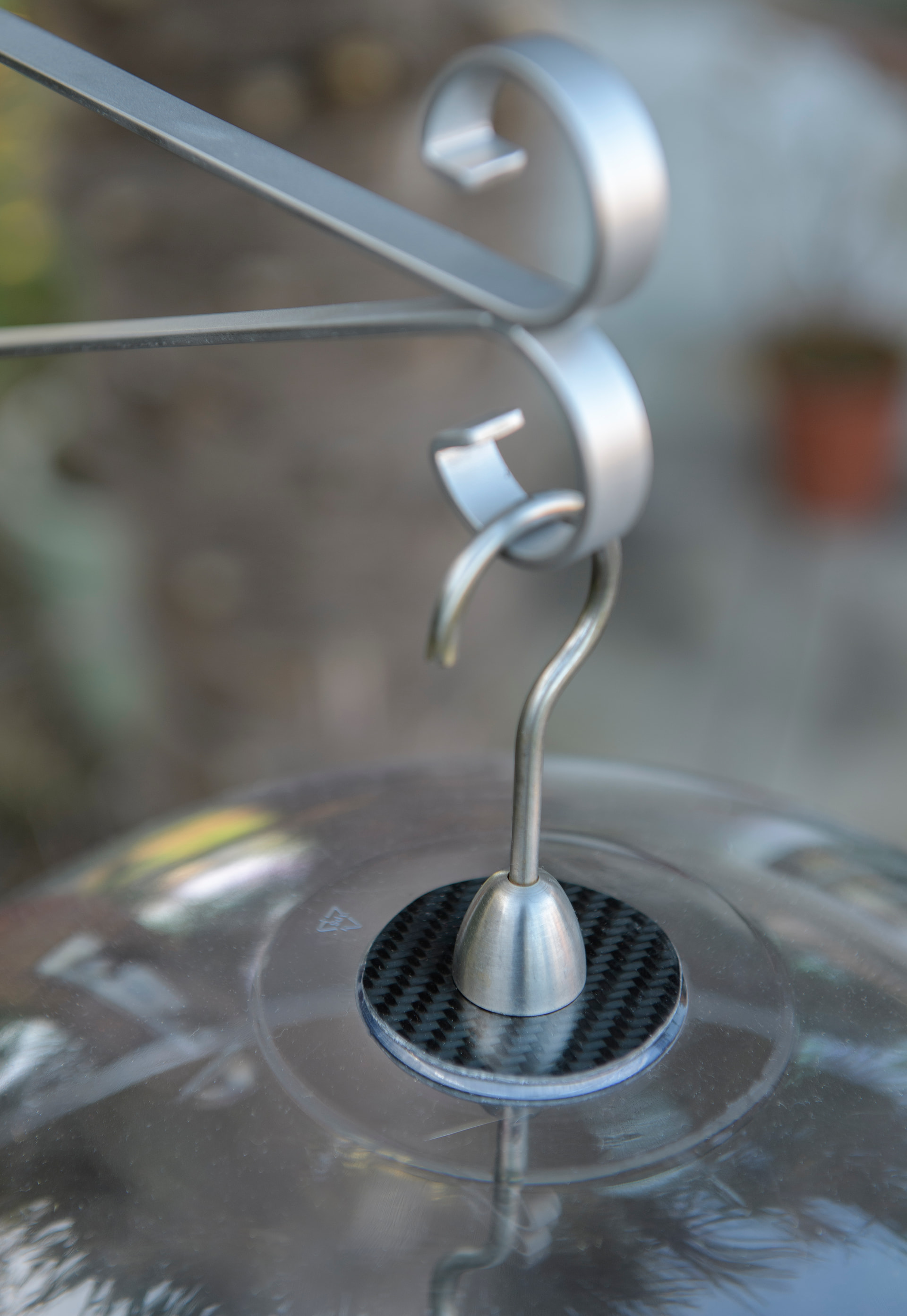 The hook attachments are stainless and carbon fibre spacers with butyl rubber washers to stop stress fracturing the domes.