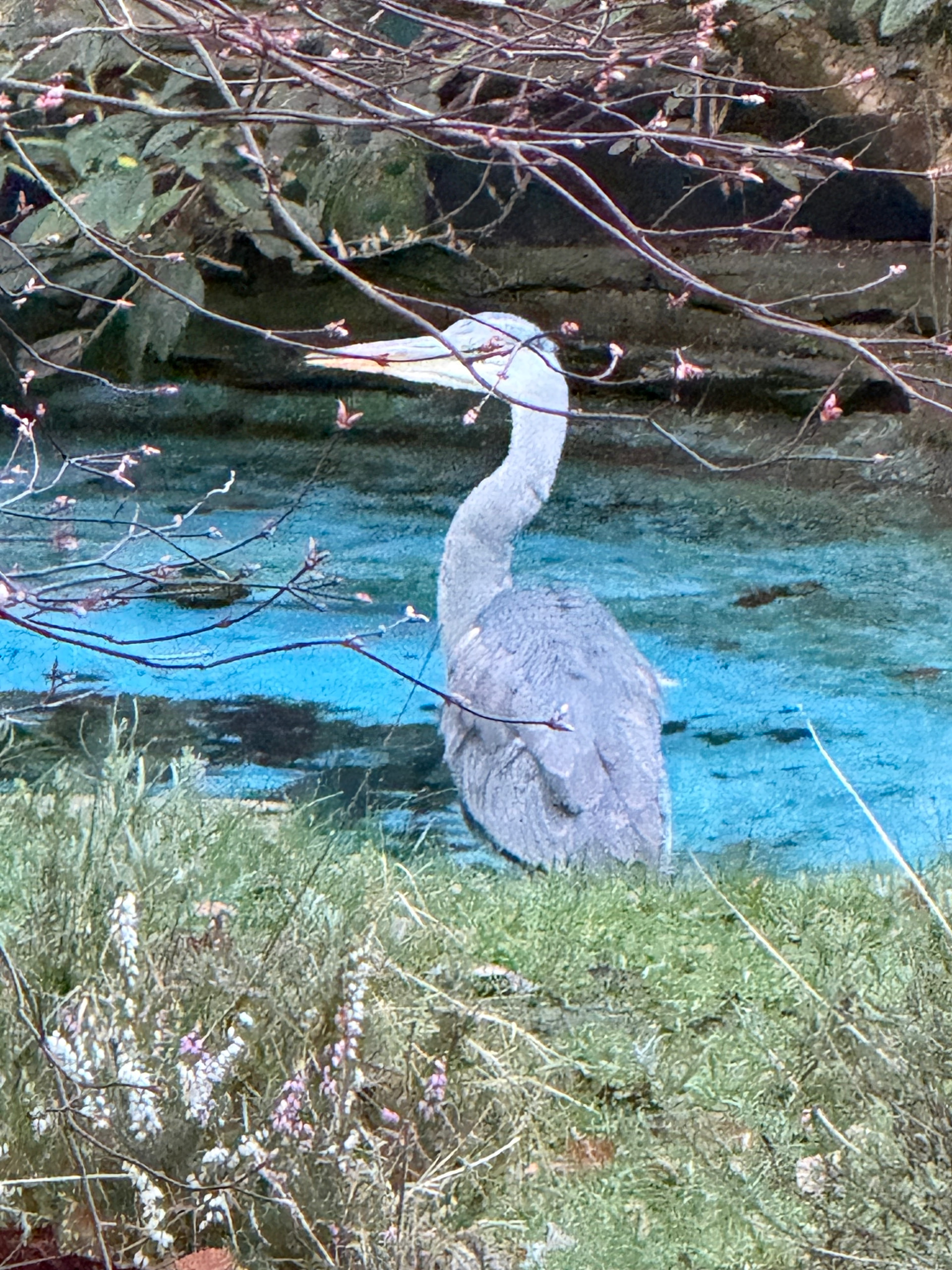 A heron (I assume only one) has reviewed my good work and decided that it now provides a more than acceptable breakfast stopover.