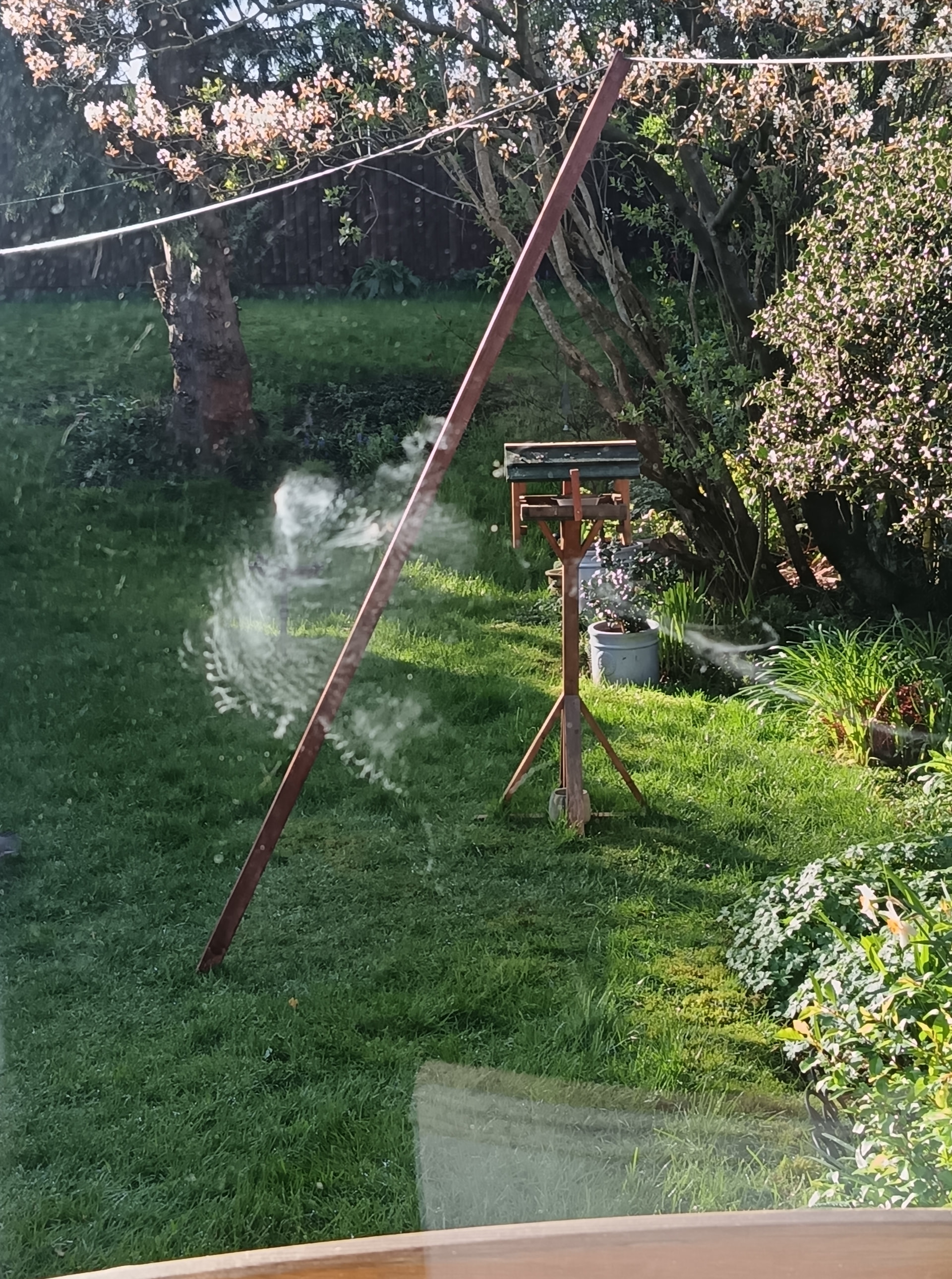 As you can see, it’s already a pile of rusty tatty junk. Apart from this, the design is rubbish. The cage around the feeders inside is too close, so the huge ravens/rooks/magpies come along and stuff themselves on the fat balls.