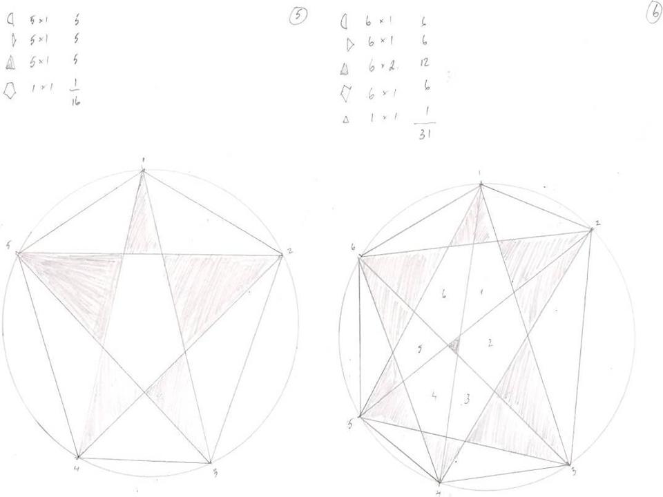 I’ll post my raw drawings below for 5, 6, 7, 8 and 9 points on the circle.