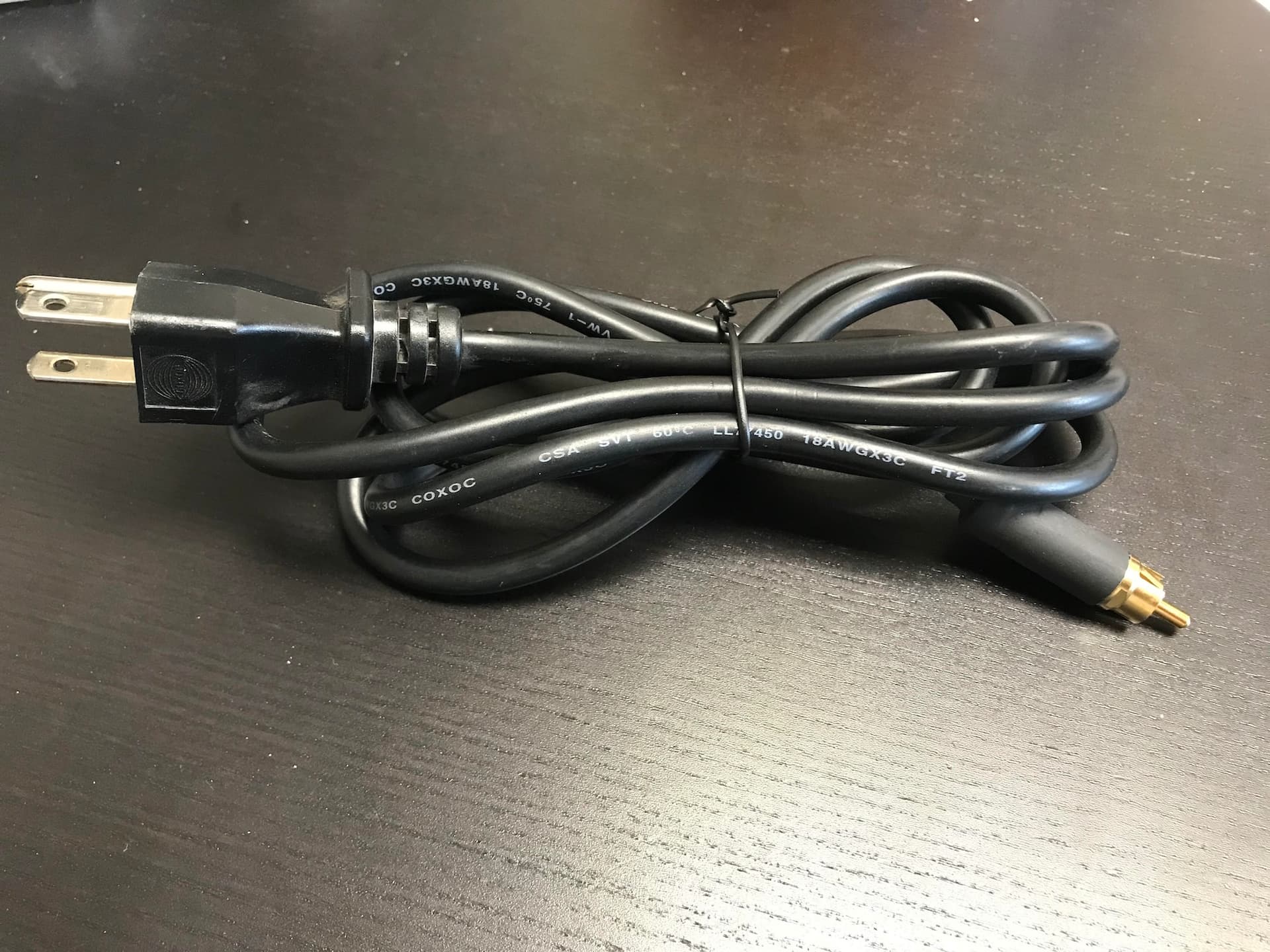 The Phono Box S2 is plugged into a extension cable from that same wall socket.