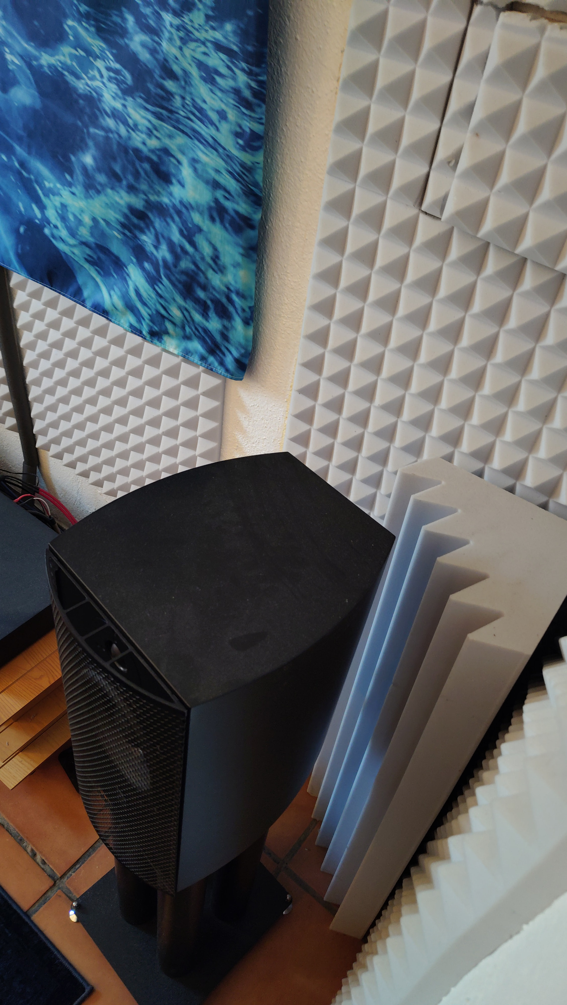 Acoustic wise, we have found that less is more. We had all manner of acoustic room treatments. Our living room was like Stonehenge. We could not enjoy the space. We took out everything except the rug in front of the speakers, a small sofa and a swivel chair. Records in oak storage line the walls. The speakers fire down the room. Wr prefer floor standing speakers with a low center of gravity. We do not care for dangling speaker cables from monitor speakers b/c of our disabilities
