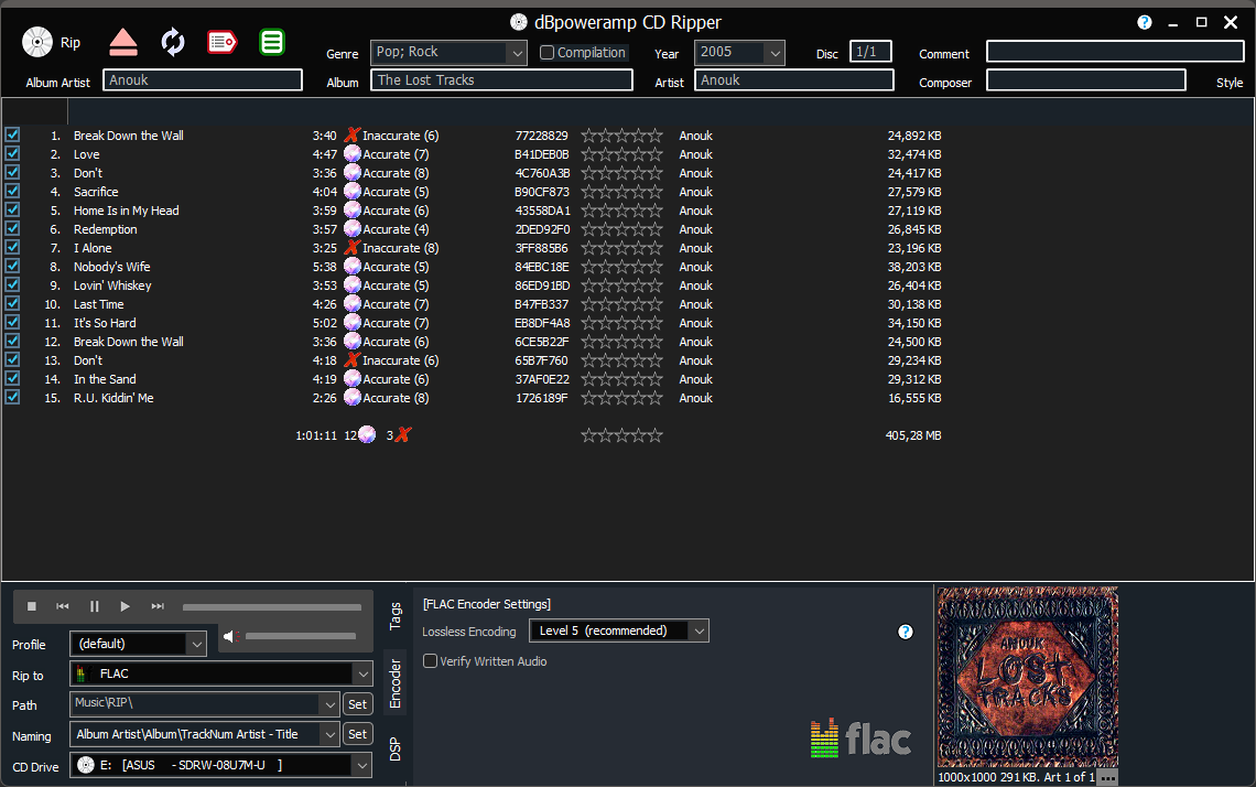 dbpoweramp uses AccurateRip, which is complaining. So, I assume the rip is not correct due to the copy protection.