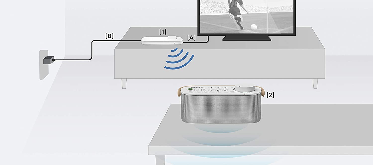You may be off looking at the Sony Wireless Handy TV Speaker SRS-LSR200. This connects to the TV sound output and is placed next to the person to enhance the sound.