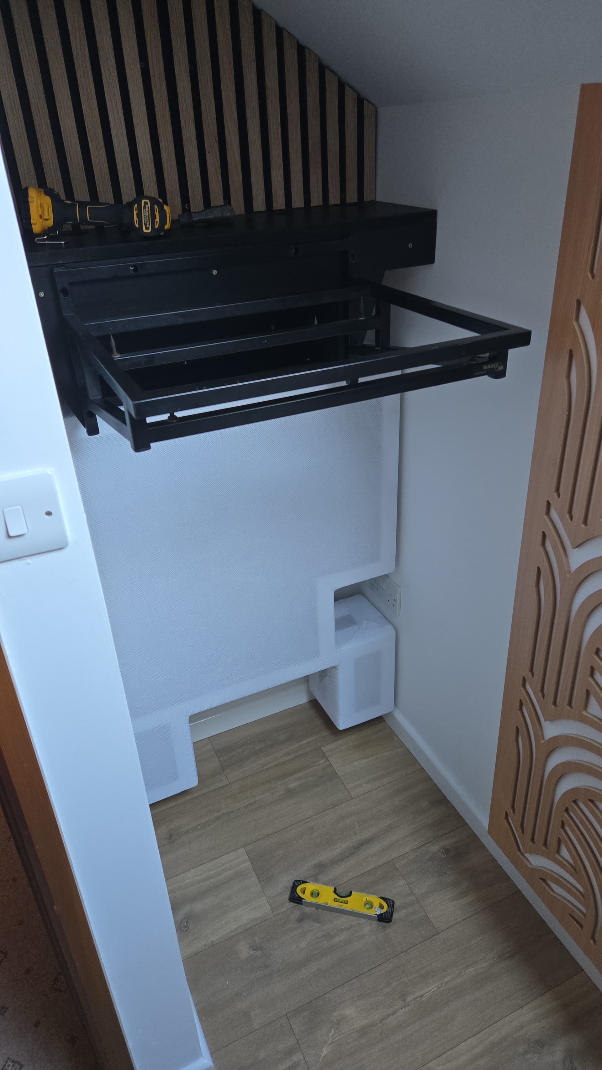 So I have been banished to the smaller room..2.5mx2.5m that does have a 750mmx900mm alcove…. I have moved and improved the sound deadening…and have mounted the hifi in alcove which is neat..