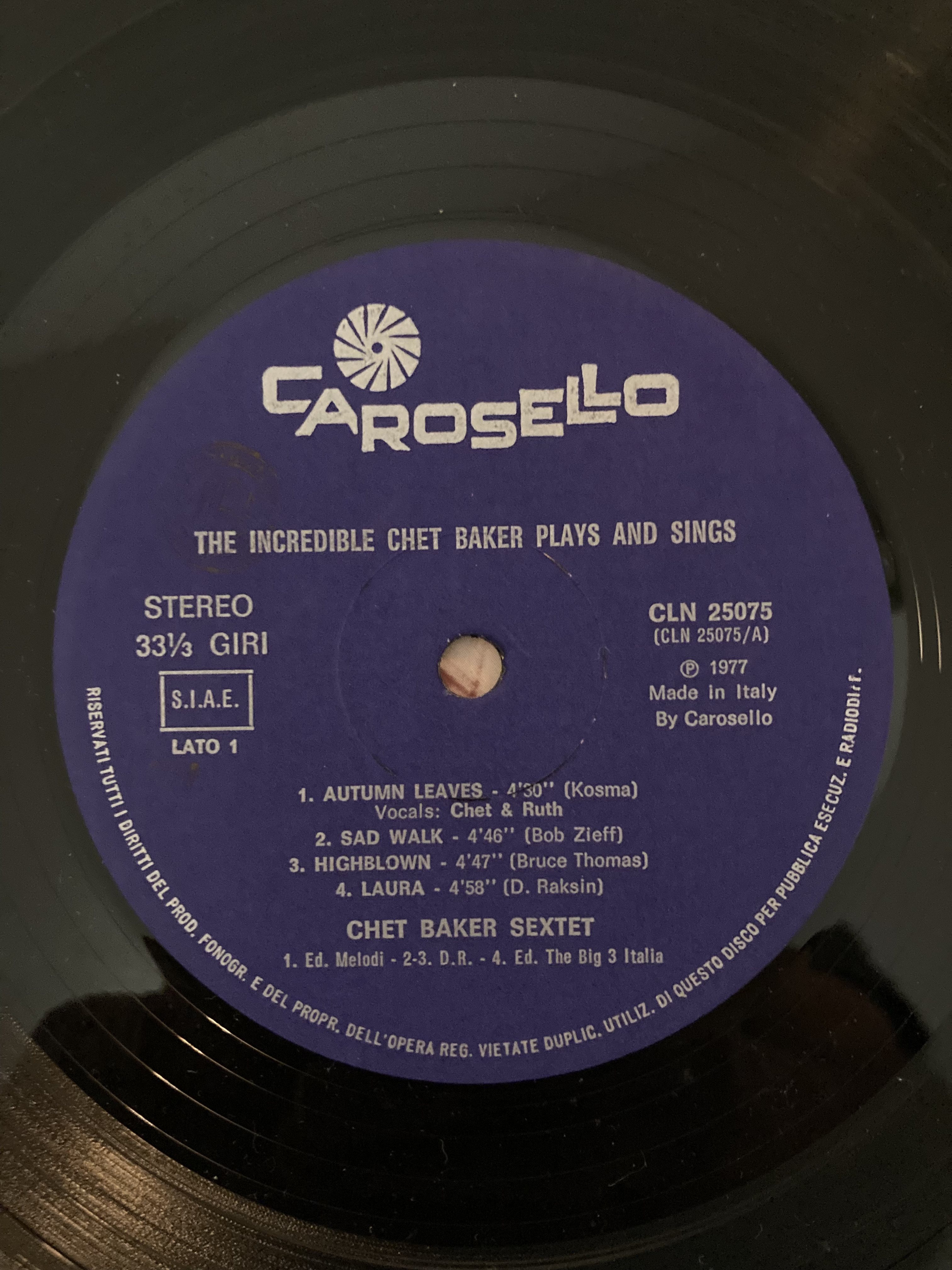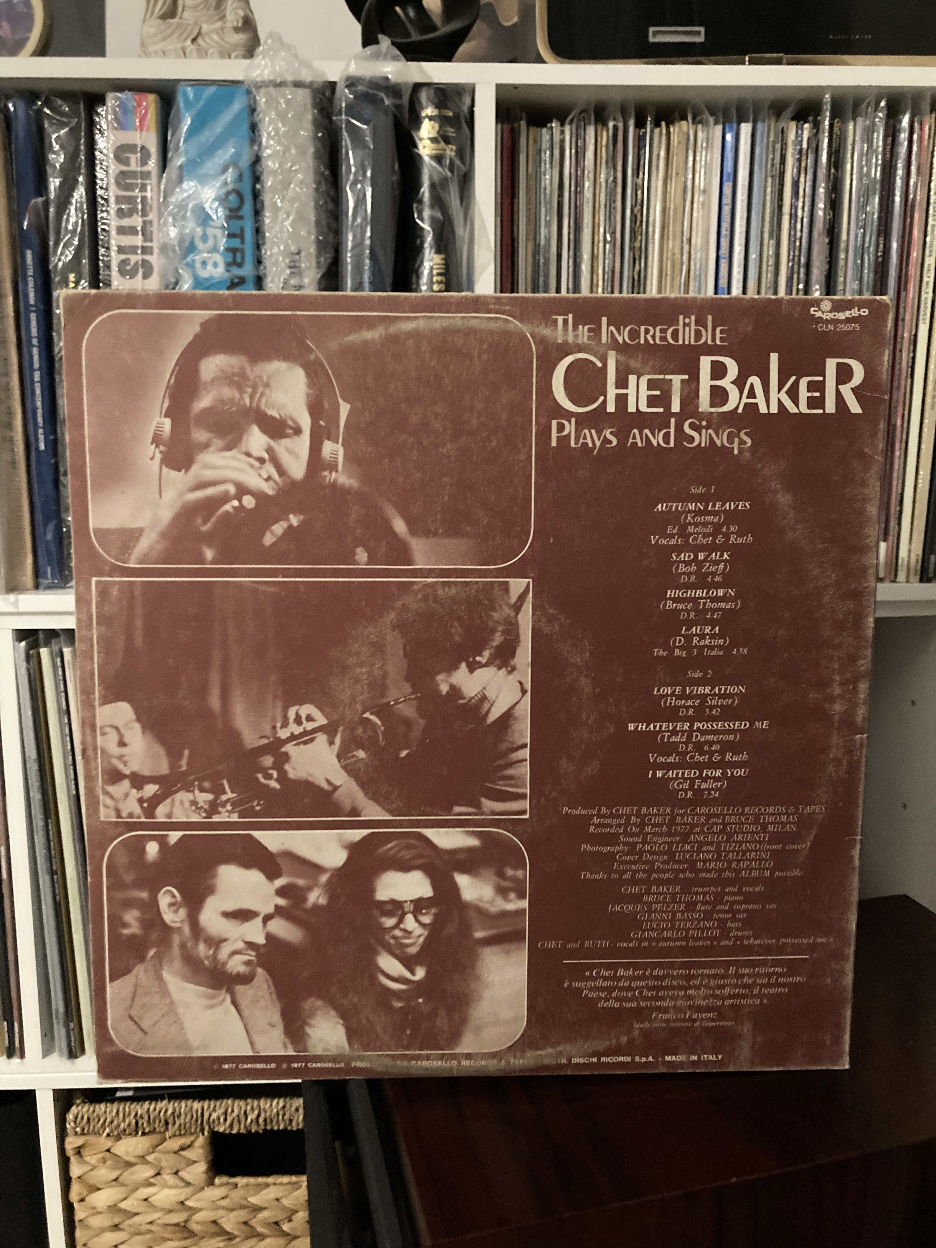 Chet’s first recording in Europe was 1977’s ’ The Incredible Chet Baker Plays and Sings on Italian label Carosello on it he duets with his latest girlfriend and amateur Jazz singer Ruth Young.