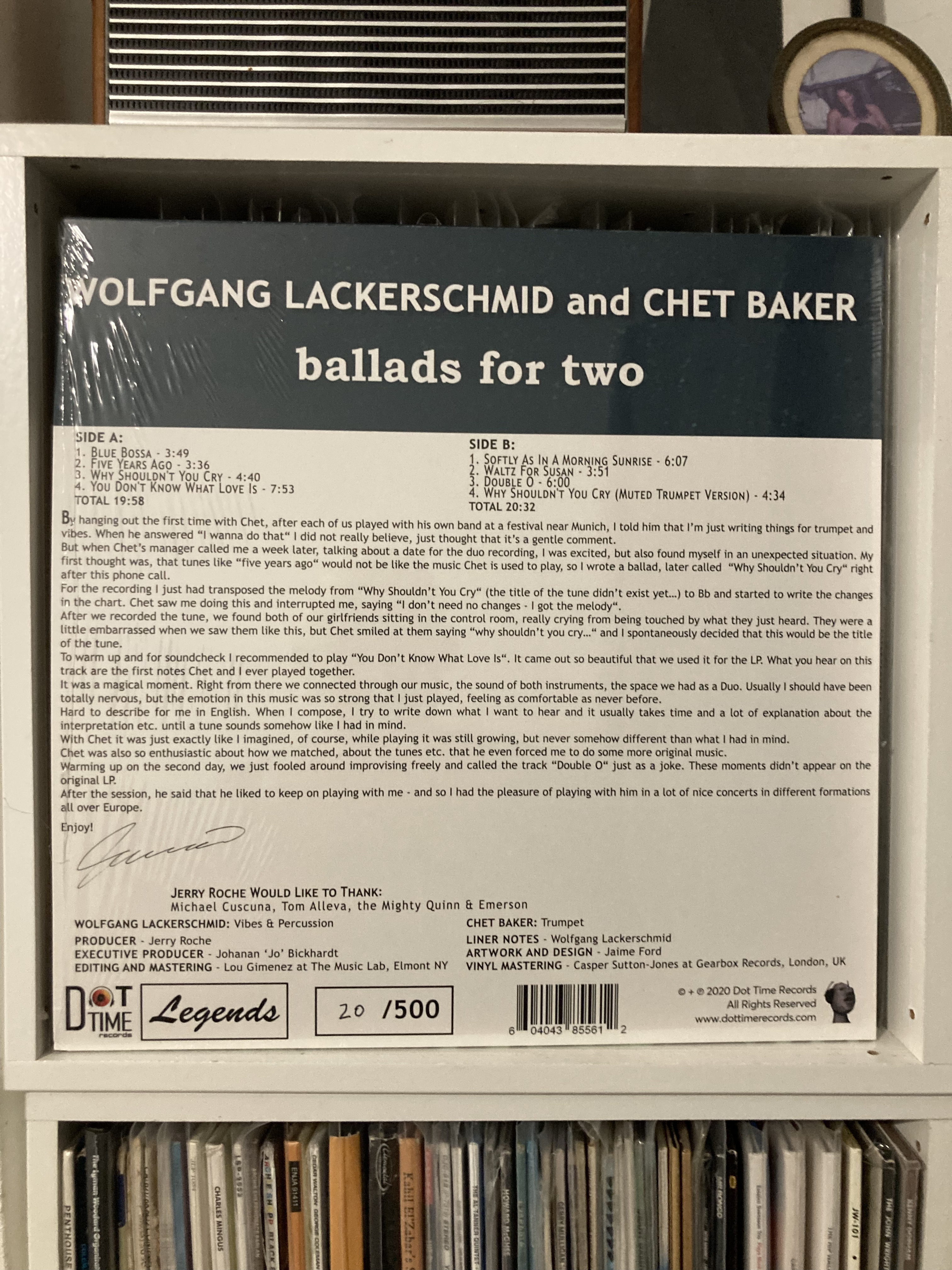 The collection of Lackerschmid compositions along with Kenny Dorham’s ‘Blue Bossa’, Standards 'Softly As The Morning Sunrise, You Don’t Know What Love is and Dessert written by both musicians was an incredible session and turning point for Chet.