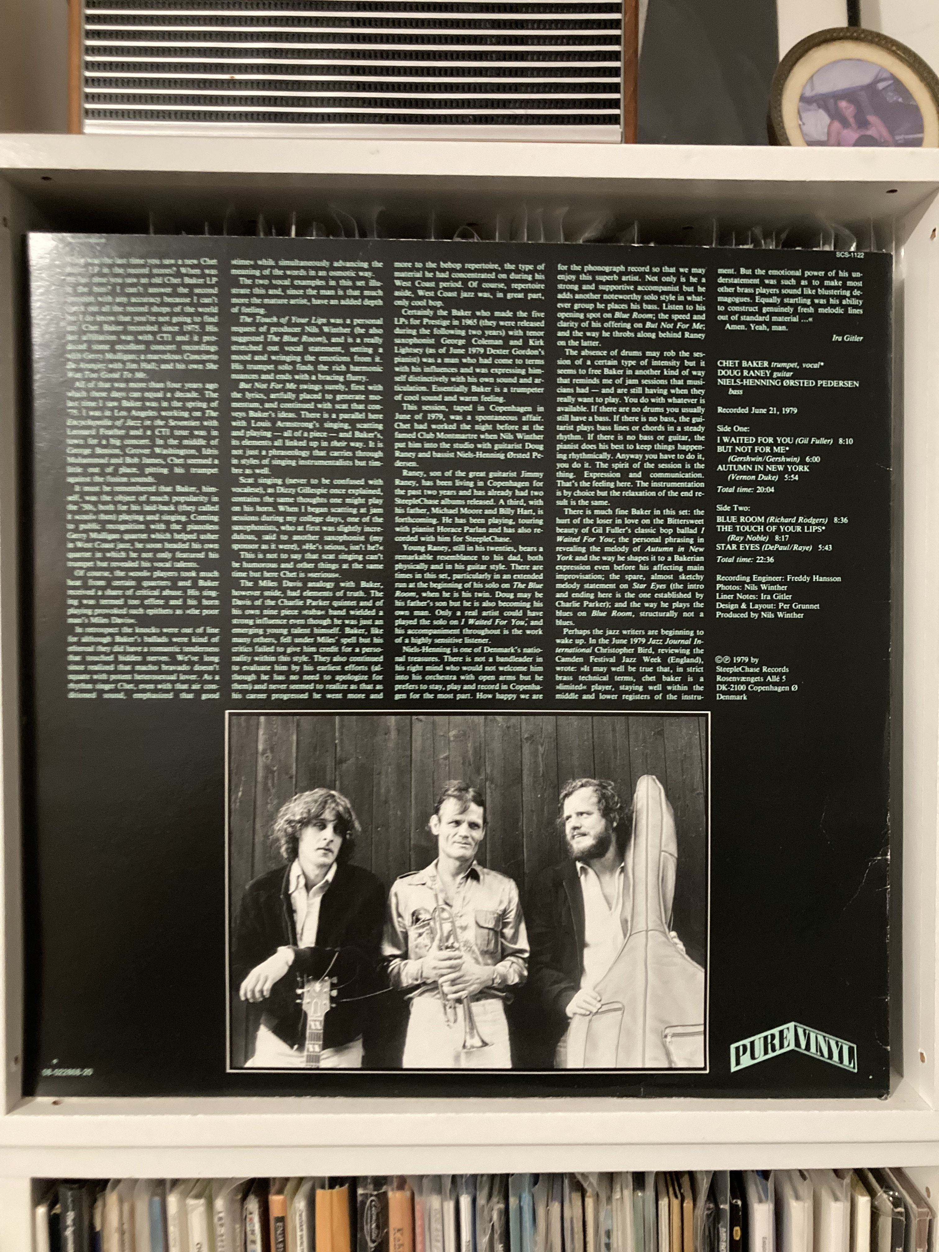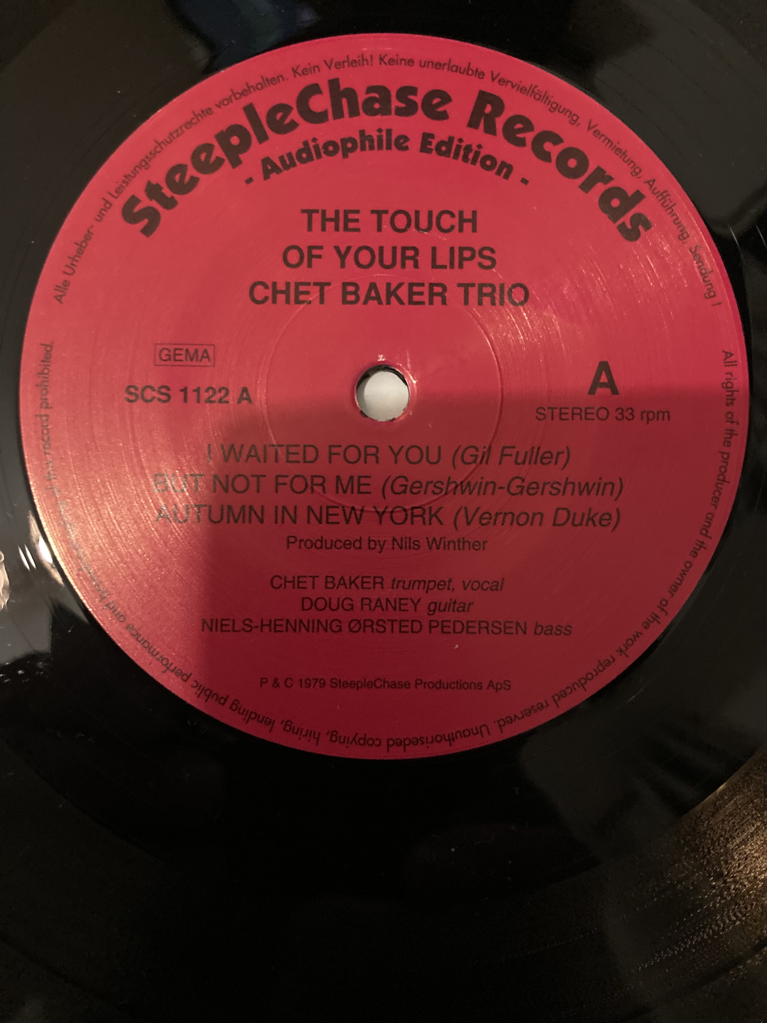 Chet recorded ‘The Touch of Your Lips’ on 21st June 1979 at Rosenberg Studio, Copenhagen he was accompanied by one of Denmarks’ greatest ever Jazz stars bassist Niels-Henning Ørsted Pedersen and young American Guitarist Doug Raney the son of Guitarist Jimmy Raney.