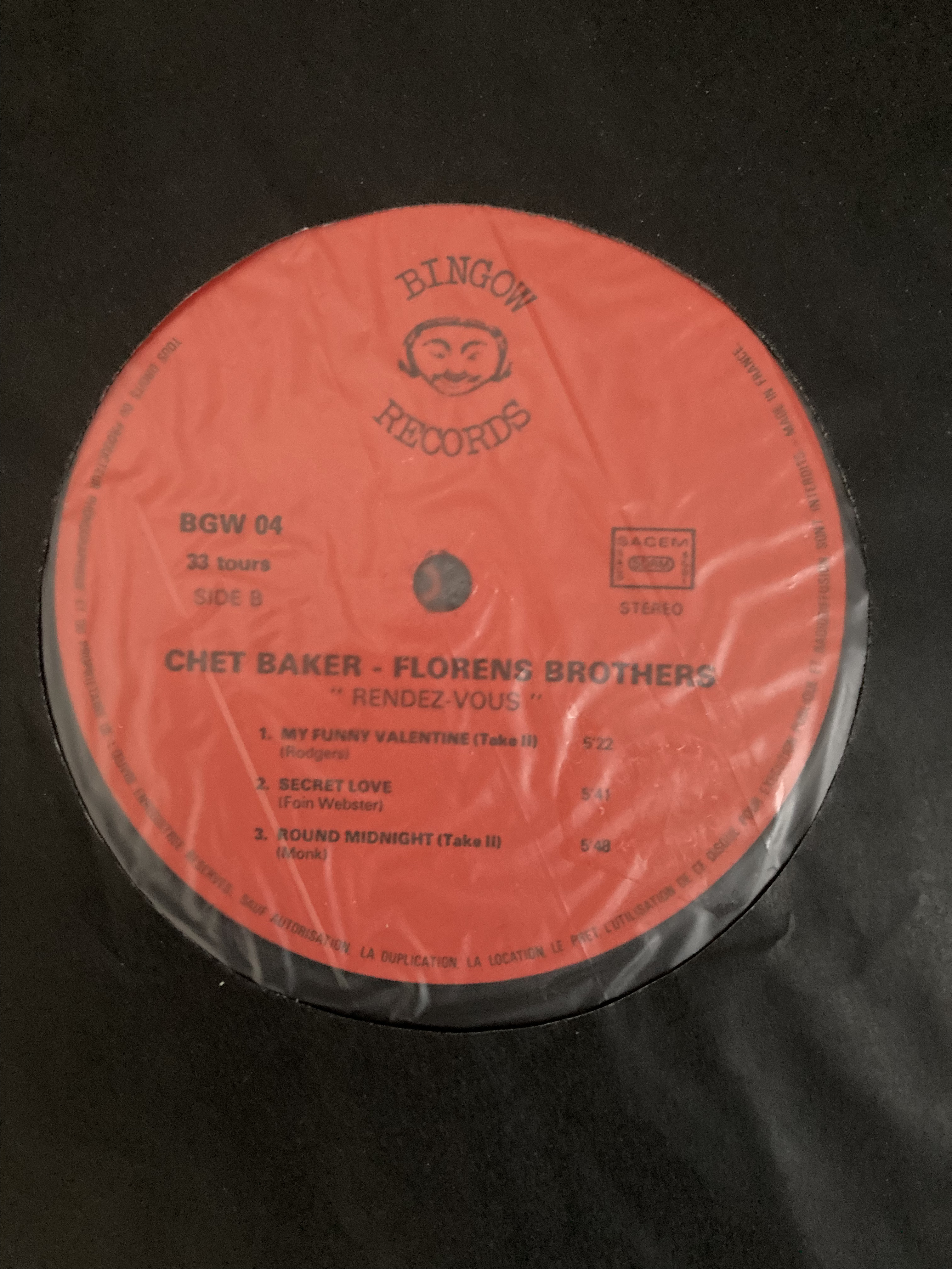 Chet’s next recording was over in London for the French Bingow label over the 4th & 5th September at John Melner Studio two records where cut unusually for Chet one called ‘All Blues’ was with a female vocalist Rachel Gould and he was a bit lost amongst the drums and Goulds strong vocals but he does stand right out during a nice instrumental version of ‘My Funny Valentine’ and also Scats really nicely over ‘Round About Midnight’.