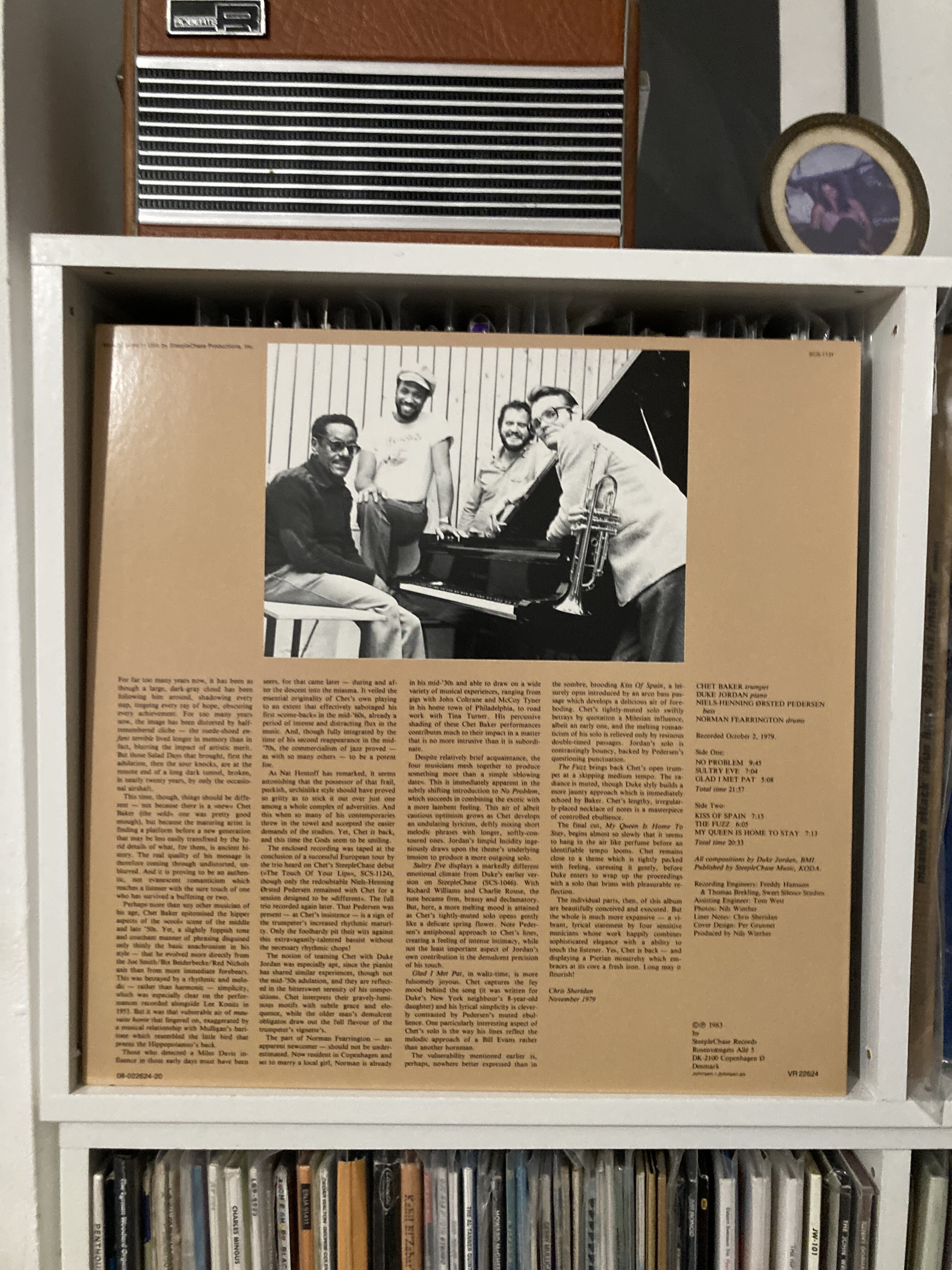 Two days before the Montmarte concert Chet went into the Sweet Silence Studios, Copenhagen again for SteepleChase but this time as part of a Quartet to record an album composed by pianist Duke Jordan with Norman Fearrington on drums and again with Niels-Henning Ørsted Pedersen on bass.