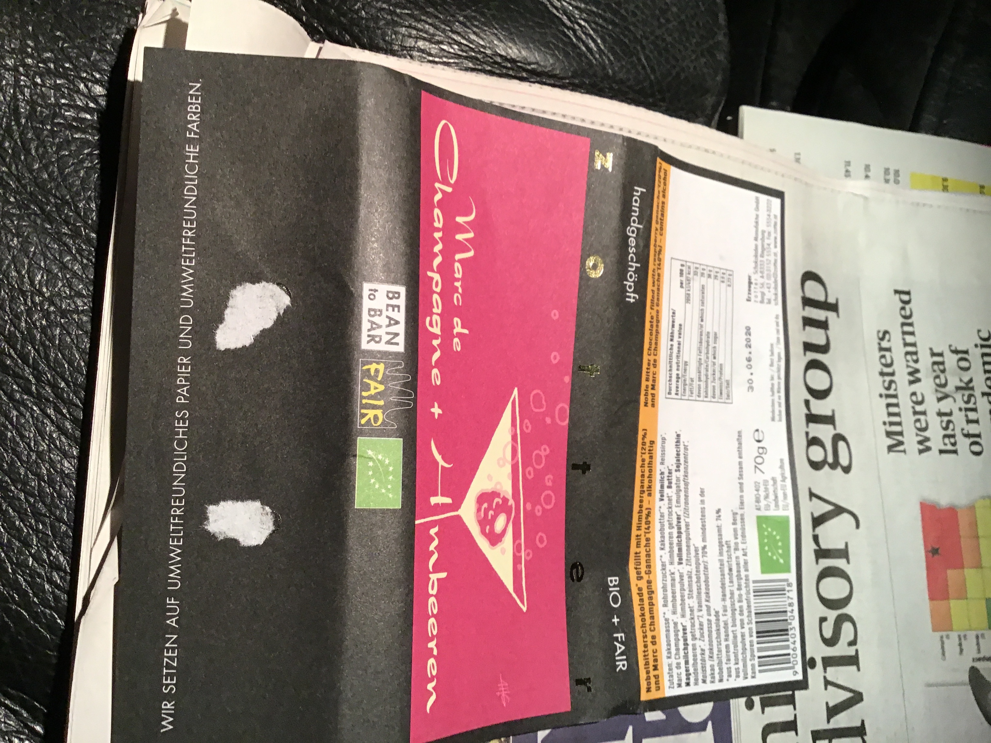 Marc de Champagne, raspberries and Bitter chocolate from Zotter.