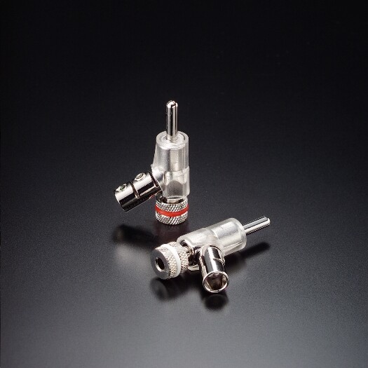 For a high level connection, a combination of spades (at the end of your subwoofer speaker cable) and banana’s (from your main speakers) at the end of the speaker binding posts might also work. The Furutech look nice though, albeit they seem a bit expensive (but can you actually connect 2 cables to them?)