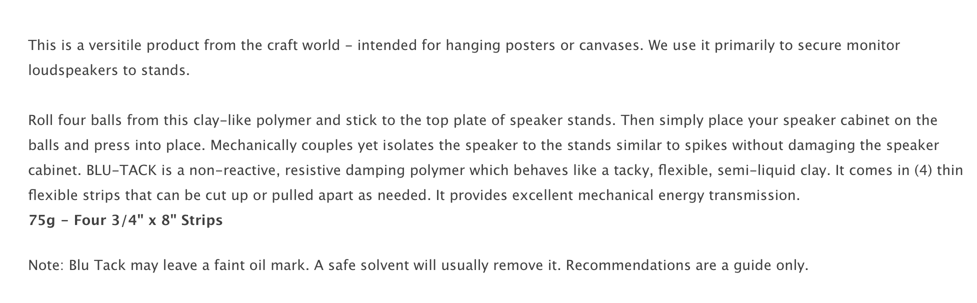 Isn’t it a risk the blutac become gluetac and merge with the speaker veneer and cause damage to the finish? When I had Harbeth I remember Harbeth told users to avoid it since they had seen so many damaged speakers using blutac.