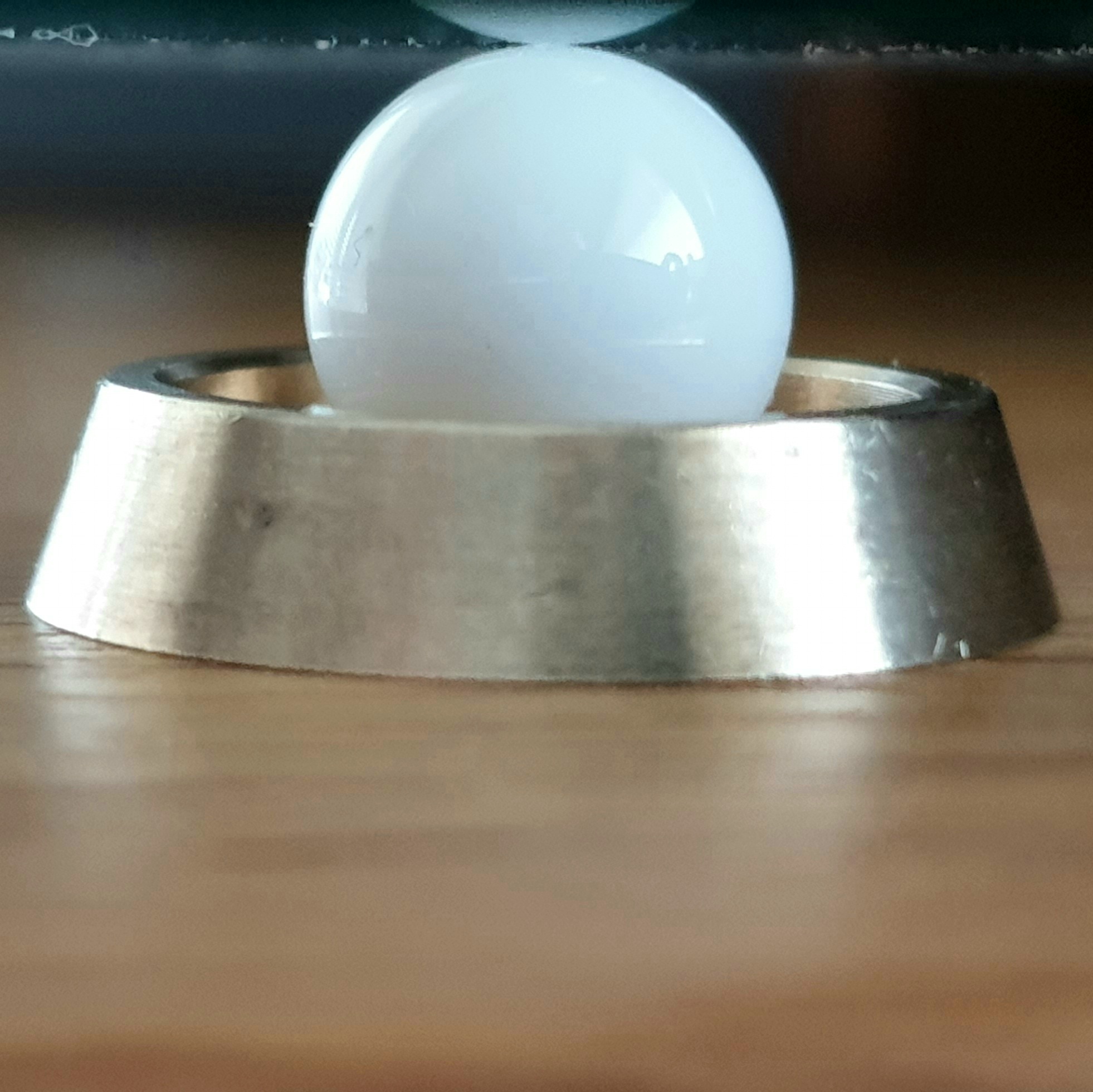 The other thread suggests reflecting the noise back down. So, it uses a copper or brass support and a ceramic ball. The difference being the brass is being used to locate and reflect noise. So, going to try that.