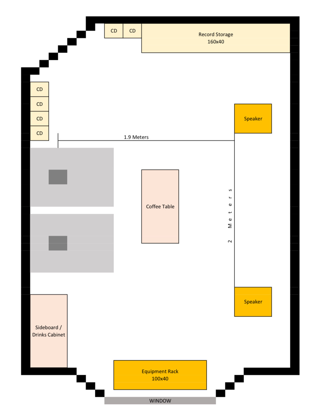Have you decided to put your 808’s along the bay window wall or the longer one opposite the door Ian? Speaker cable length, mains socket position dictate? I can offer my two pence worth of advise regarding treatment either way.