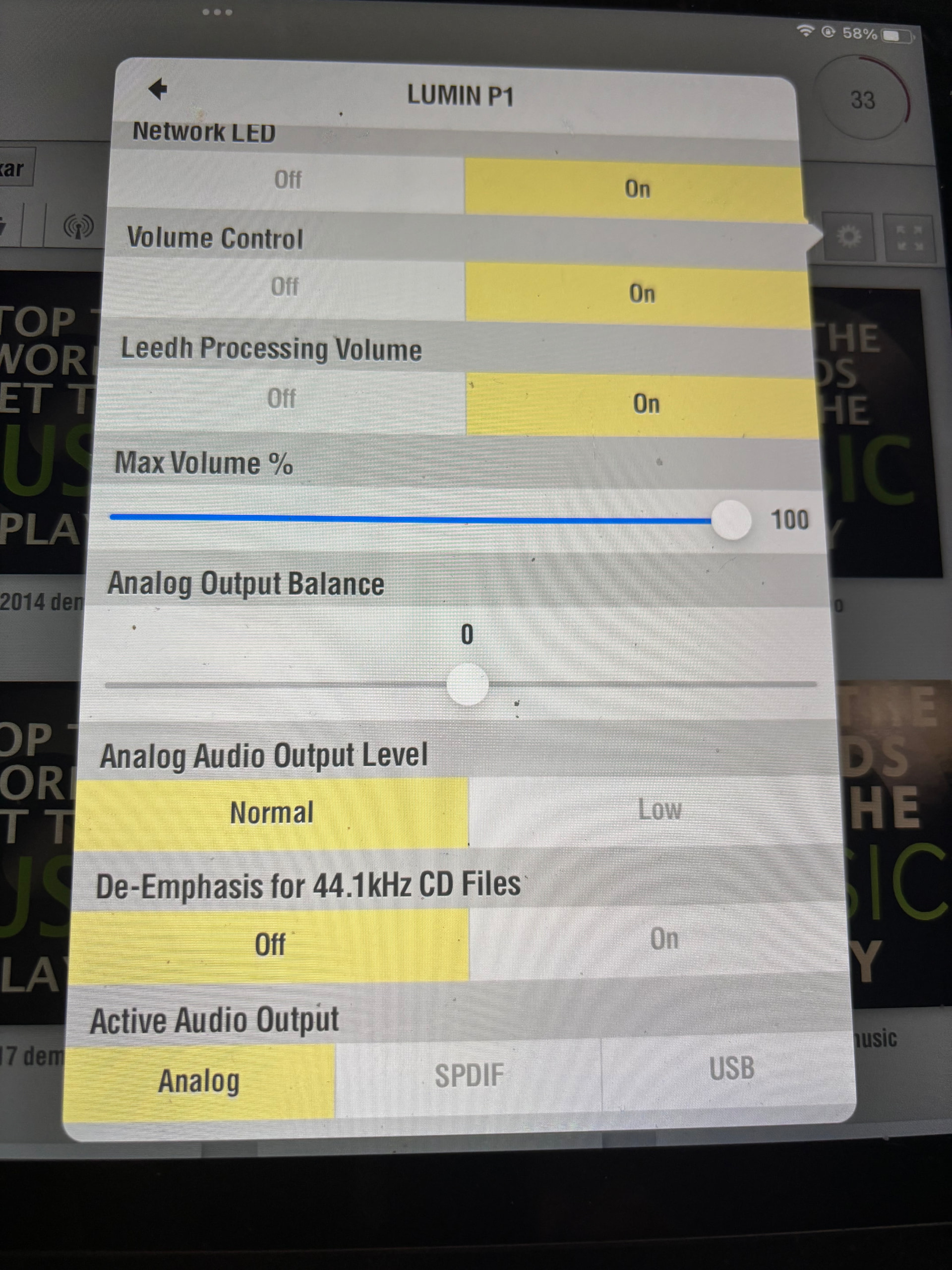 Also, have you checked the settings on the Lumin in the App? It is possible you need to change something there, but hard for me to say what, without seeing your settings.