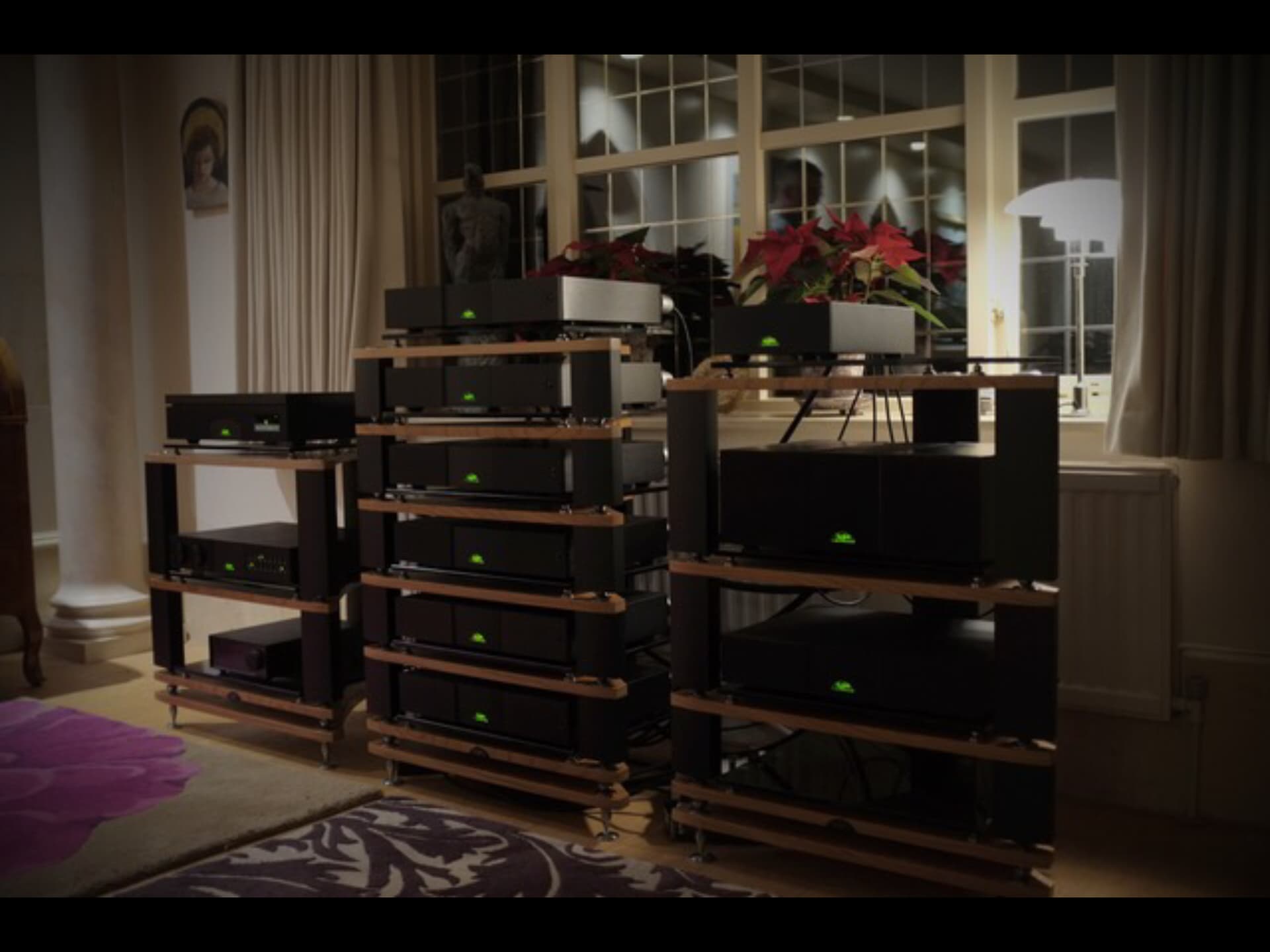 With Naim’s wall hugging speakers a bit of precision with placement pays off with extracting the bass from them. When setting up my NBLs 5cm wasn’t as good as 5.5cm and 6cm was worse again between the wood of the speaker and the wall. This held for the two rooms I set them up in with solid walls. There was also a sweet spot for the gap between them that was less than 10cm wide where the impression of scale was best. They still started rolling off at around 40Hz, 30Hz was audible, just but that was it. NBLs have two SBL bass drivers back to back so I’d expect SBLs to roll off a bit higher. Except I’ve now got them in a room with dry lined walls, bass was absent back against the walls but filled out and goes a bit deeper with the fronts around 70cm out but also very narrow. The scale sweet spot for distance between was the same as in the previous room.