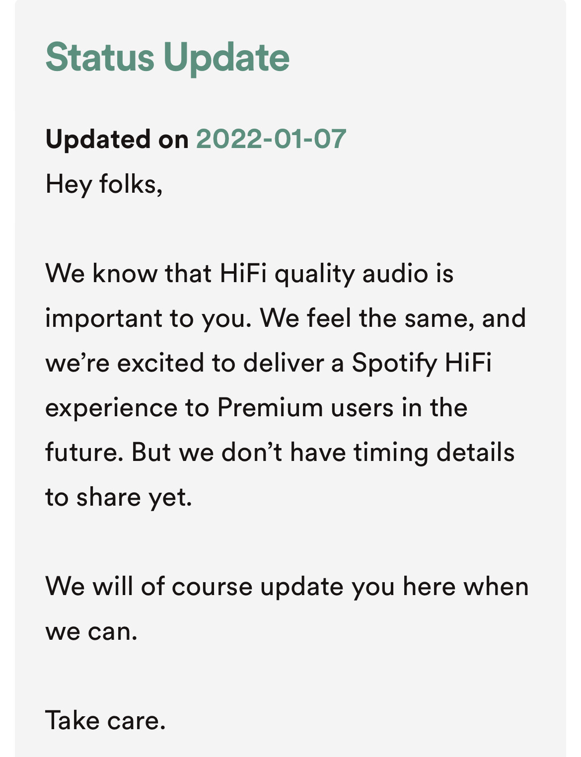Right now, we just wait for the SPOTIFY HIFI.