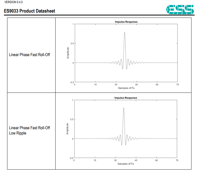 The great news is that the ESS DAC family give designers eight filters to choose, some linear phase some not. What is involved for the designer using such DACs is the trade-offs involved between desired anti-alias protection (of the repeating spectral images of the wanted audio in the Z domain), degree of ripple in the desired passband, sufficient clean initial transient response of the DAC (little or no pre-echo in overall impulse response), and ultimate differential nonlinearity performance if also incorporating other features such as implementing digital volume control.