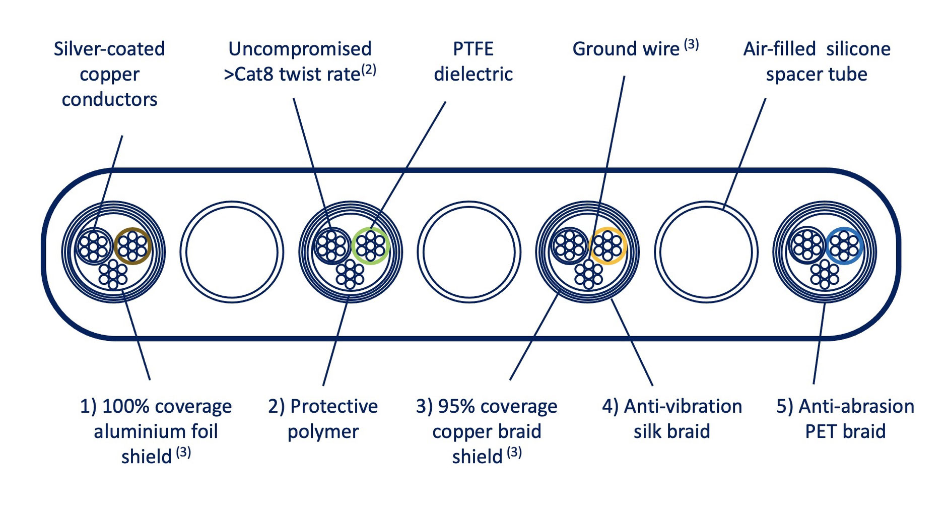 It may or may not actually be ethernet in compliance terms, some construct cables that are not twisted pairs but do the same job, they circumvent the ‘ethernet’ term by calling them streaming cables. These can sell at £2500 +++