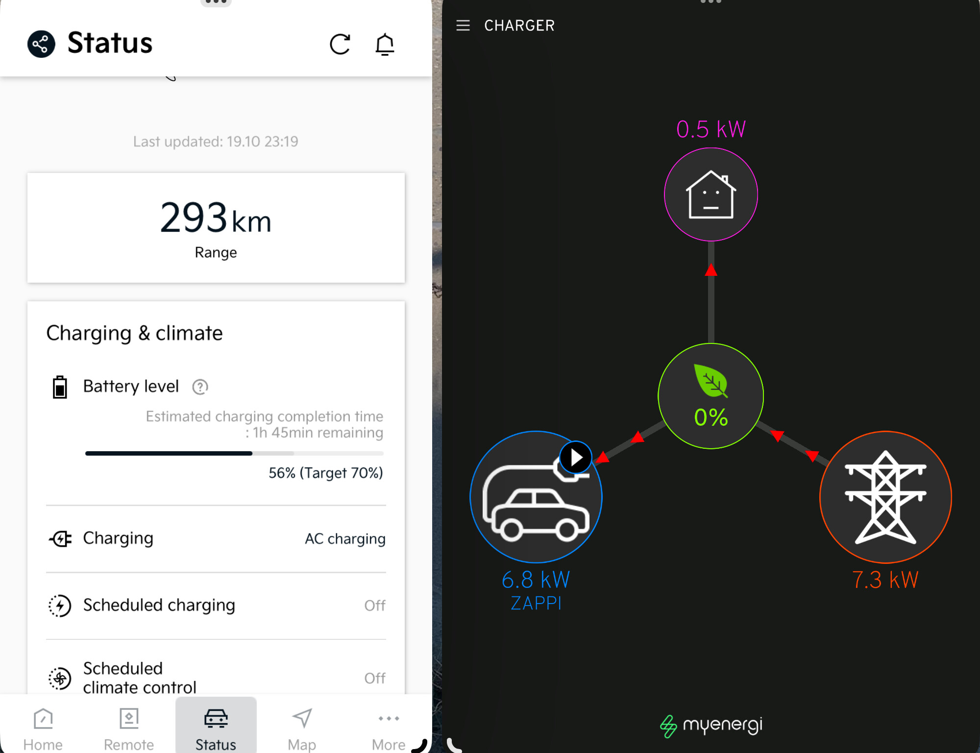 Like manu in the UK i use octopus go to charge my ev. This means that my car decides when to charge based on when it is told to by octopus. The zappi charger is now a pretty dump device.