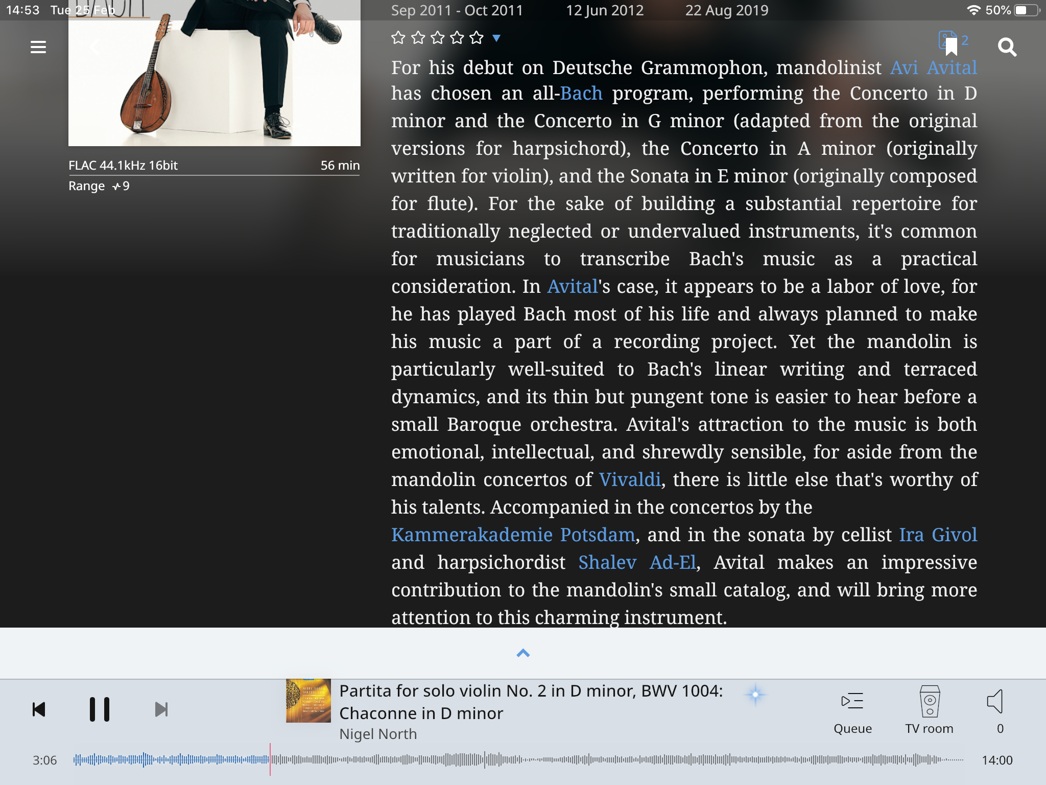 I was introduced to this chap by an American friend who is teaching himself mandolin as a retirement hobby (he travels with it too). Here is what Roon has to say, along with a photo of one of his albums.