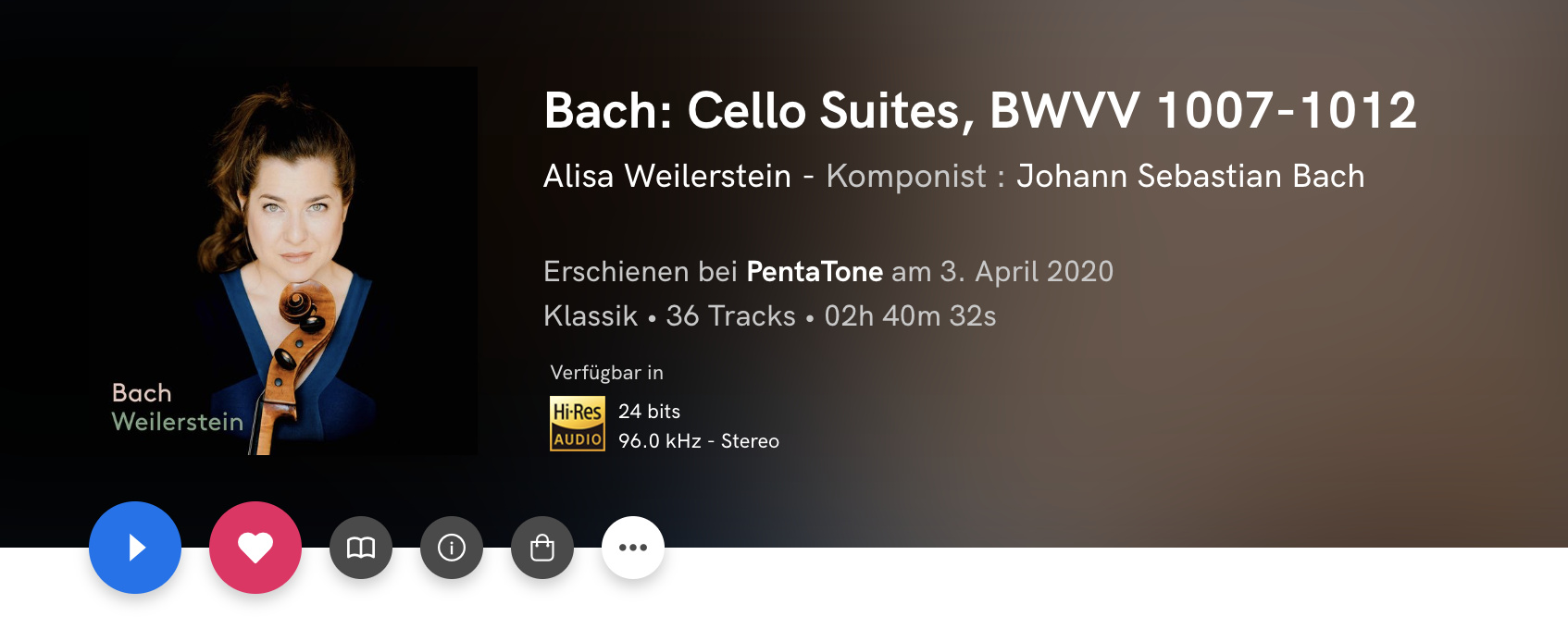 Does the Cello Suite transcribed for violin count. Stunning hires recording also.