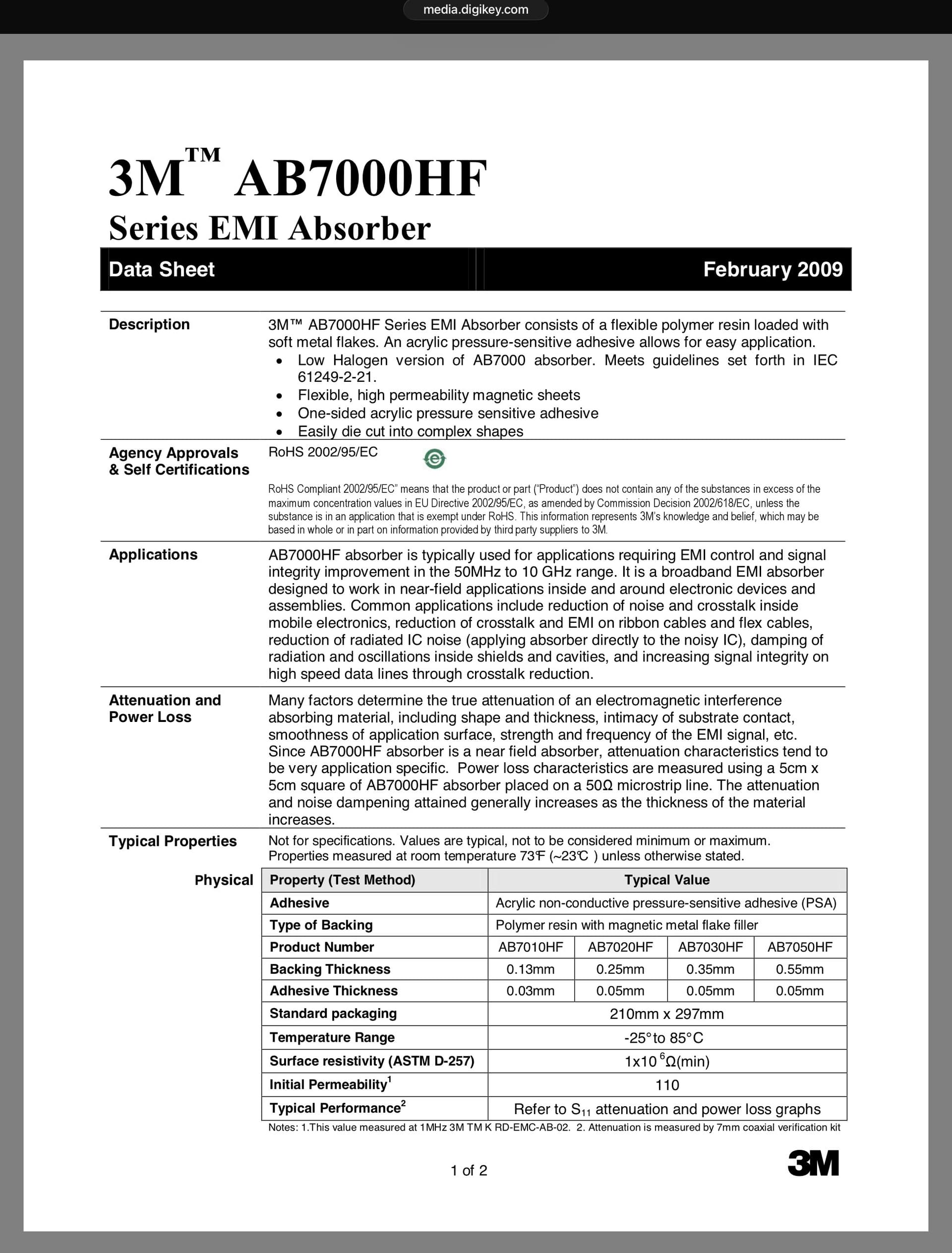 I don’t think it’s an “either or” proposition. In some industry brochures, 3M highlights using AB7000 on its own and in conjunction with shielding elements. Both are useful, but AB7000HF is certainly more versatile, with many more use cases than mere reflection of EMI/RFI.