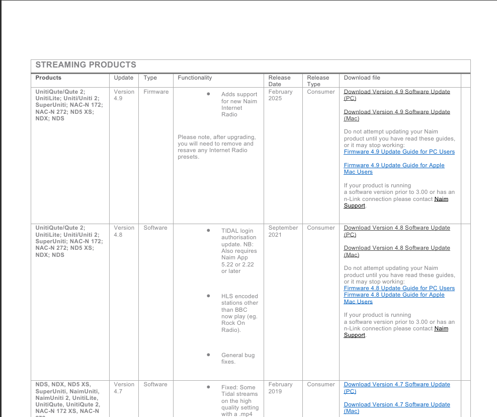 Have just been to the Naim Firmware update page and noted when wanting download 4.9 that the 2 downloads at top of page are wrong way around{mislabelled) top one shows for PC but downloads “MAC” and 2nd one down shows “MAC” and downloads PC