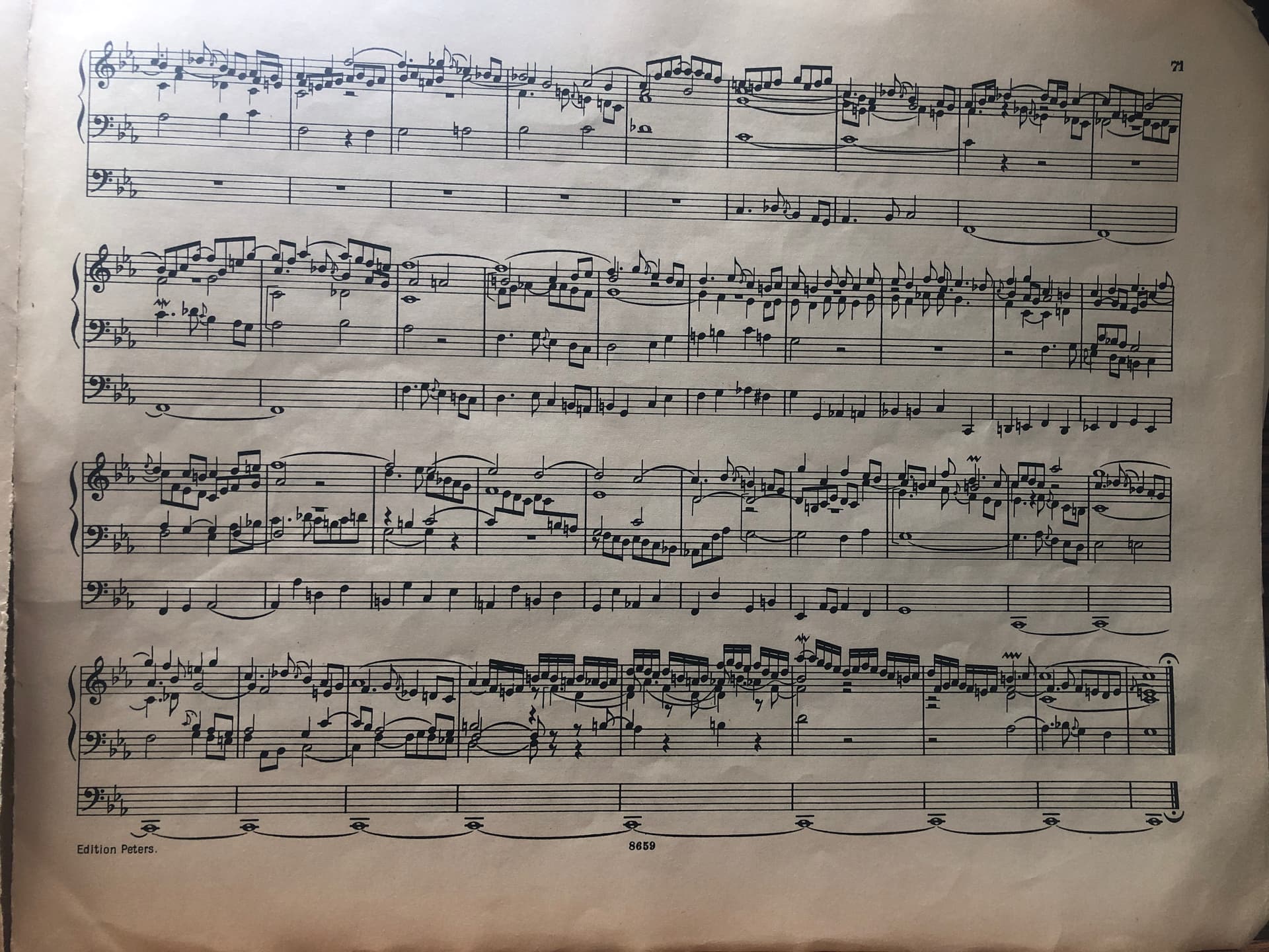 It’s one of those pieces which show the greatness of Johann Sebastian’s mind. When listening it does not immediately become apparent, but in the before last stave the bass is stepping down in crossed figures until it finds its final rest in the lowest tone of the organ. That’s just one aspect, but there is a lot more in this piece. Incredible.