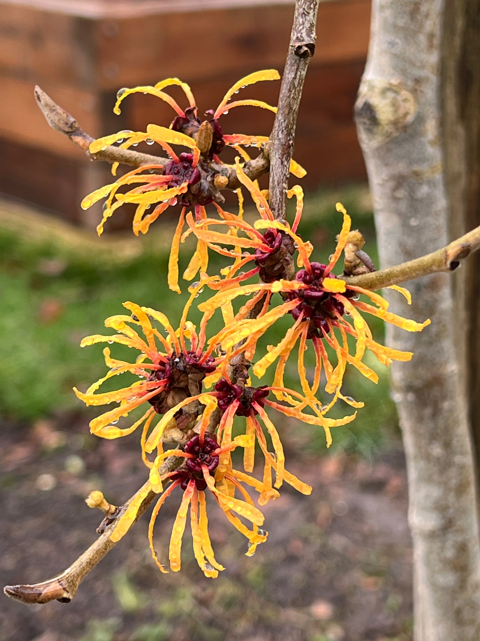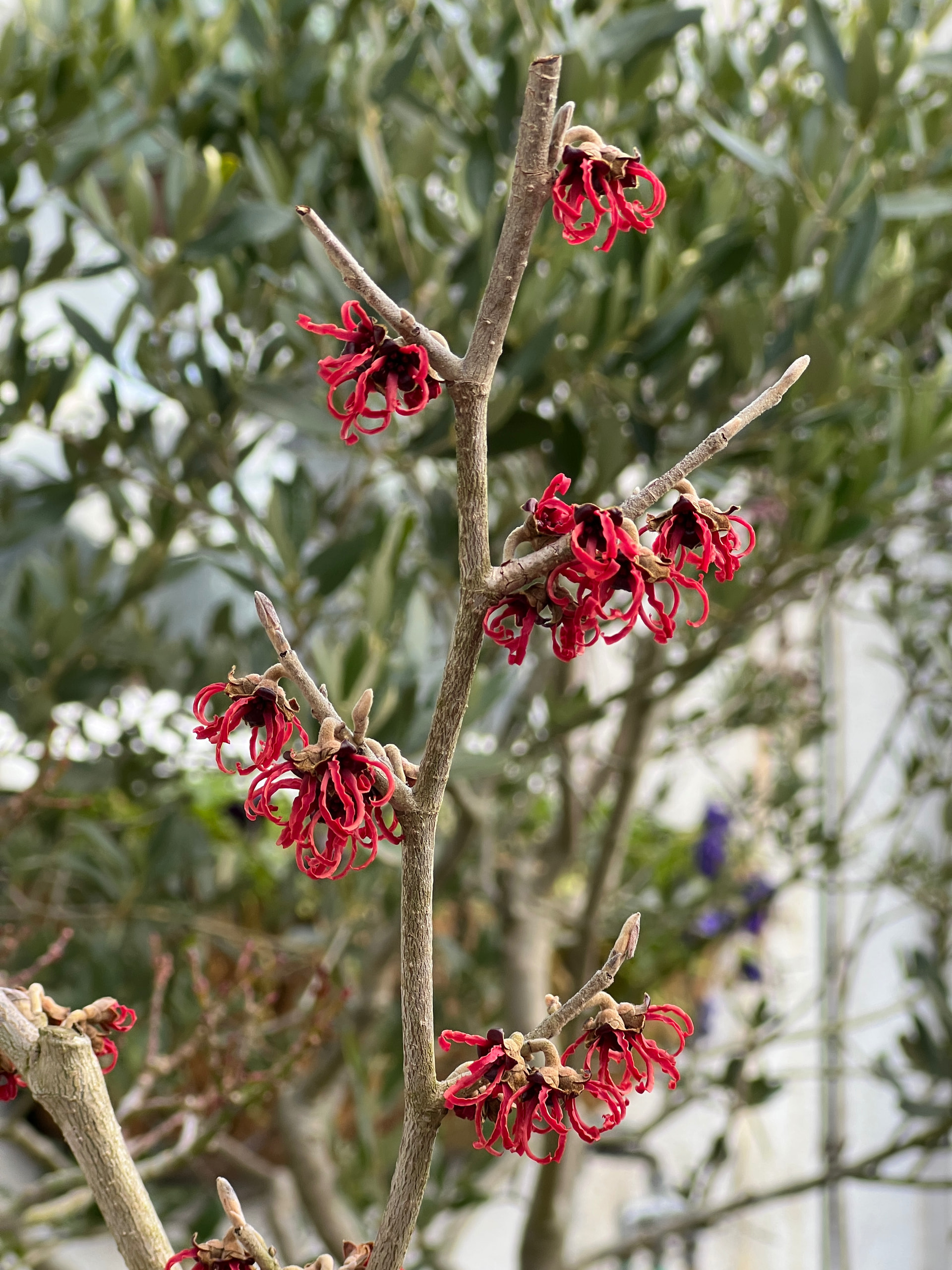 I have a red variety called Hamamelis x intermedia Diane. There’s not much fragrance and the flowers are smaller, but it looks nice.