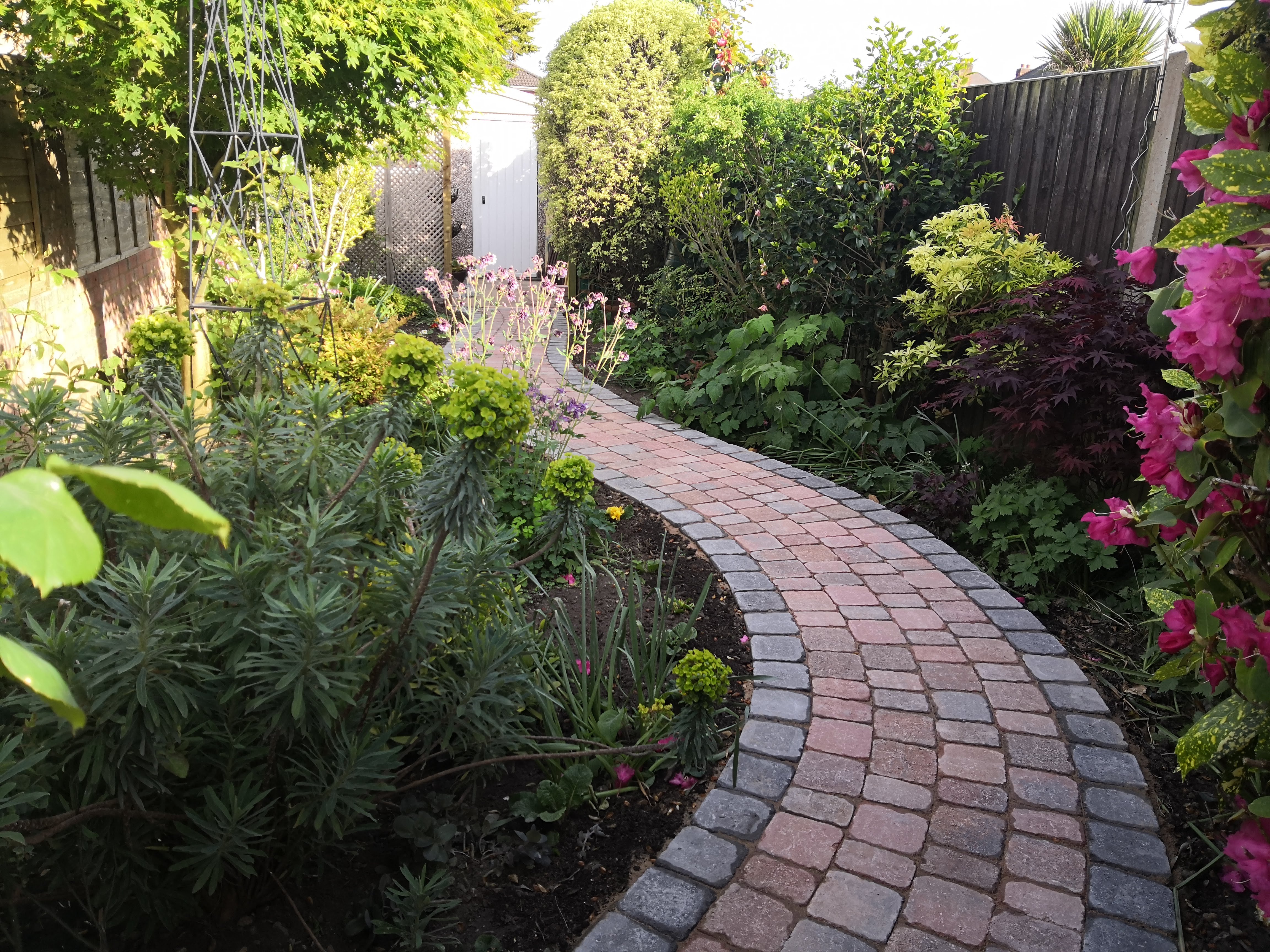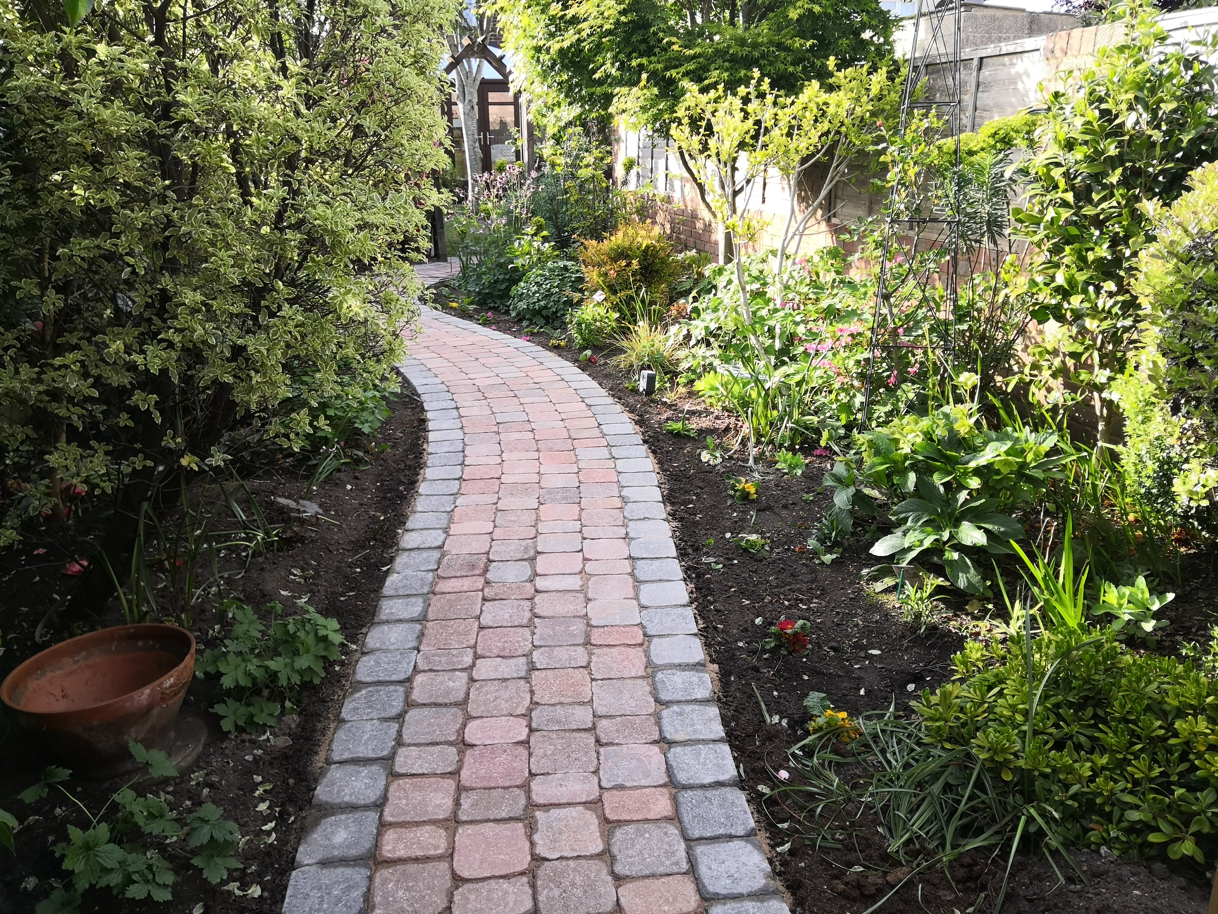Last week we had the path relaid and we are delighted with it. We’ve renamed the area from the ‘New Garden’ to our ‘Secret Garden’. Although it feels new again, we’ve had the land for over 20 years now! It now feels an area to walk through slowly and enjoy the plants, rather than a quick dash to go to the tumble dryer.
