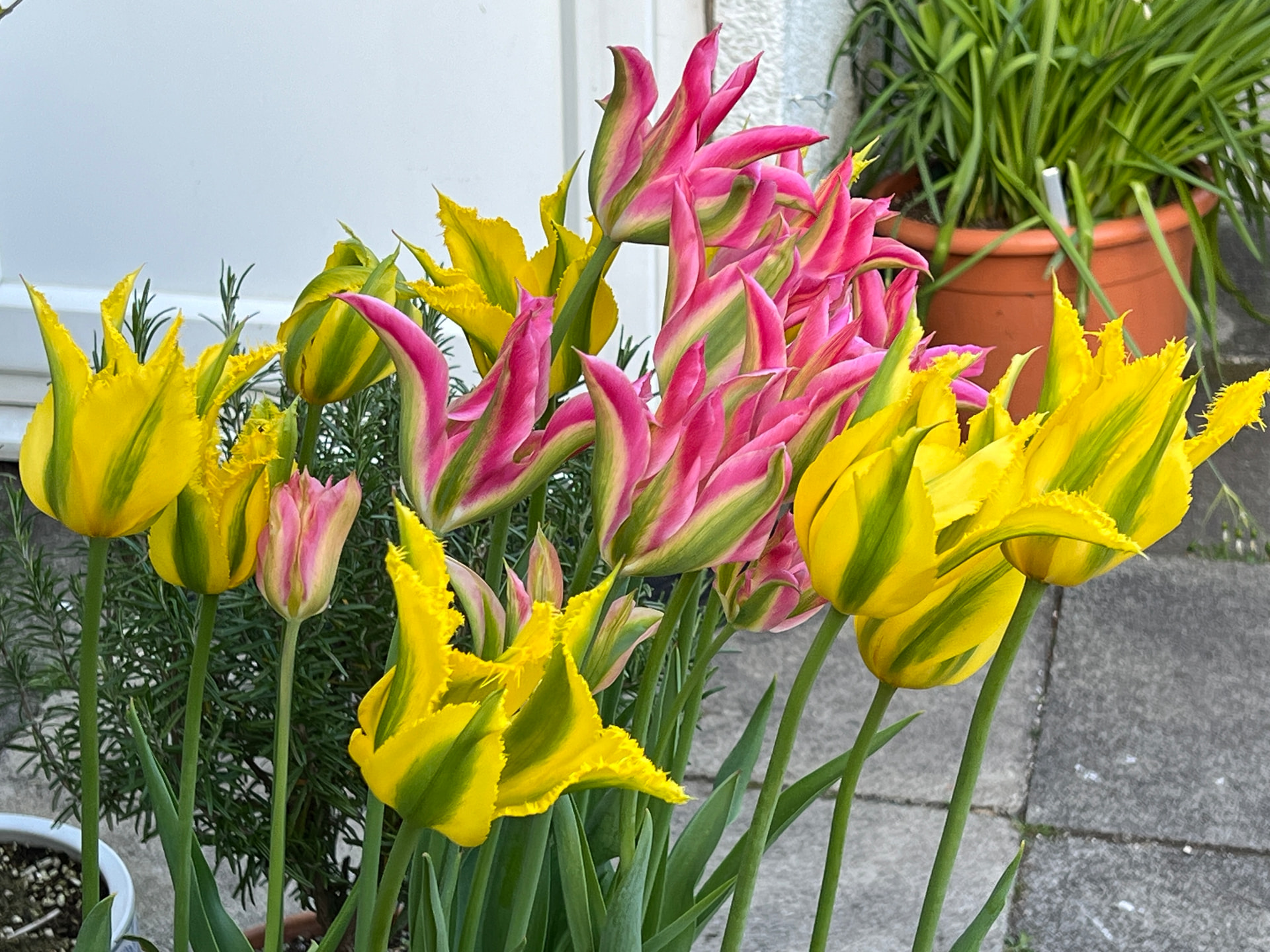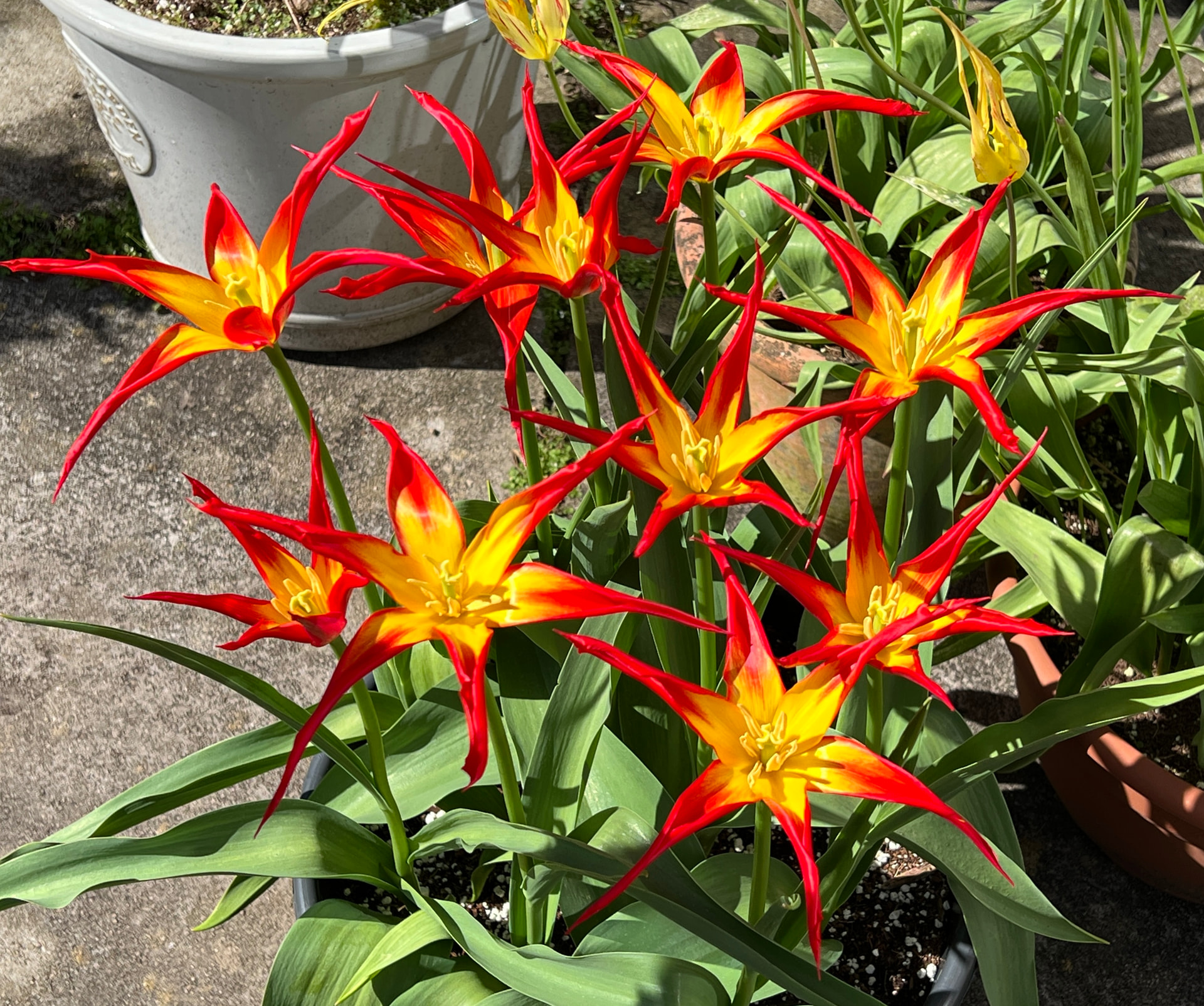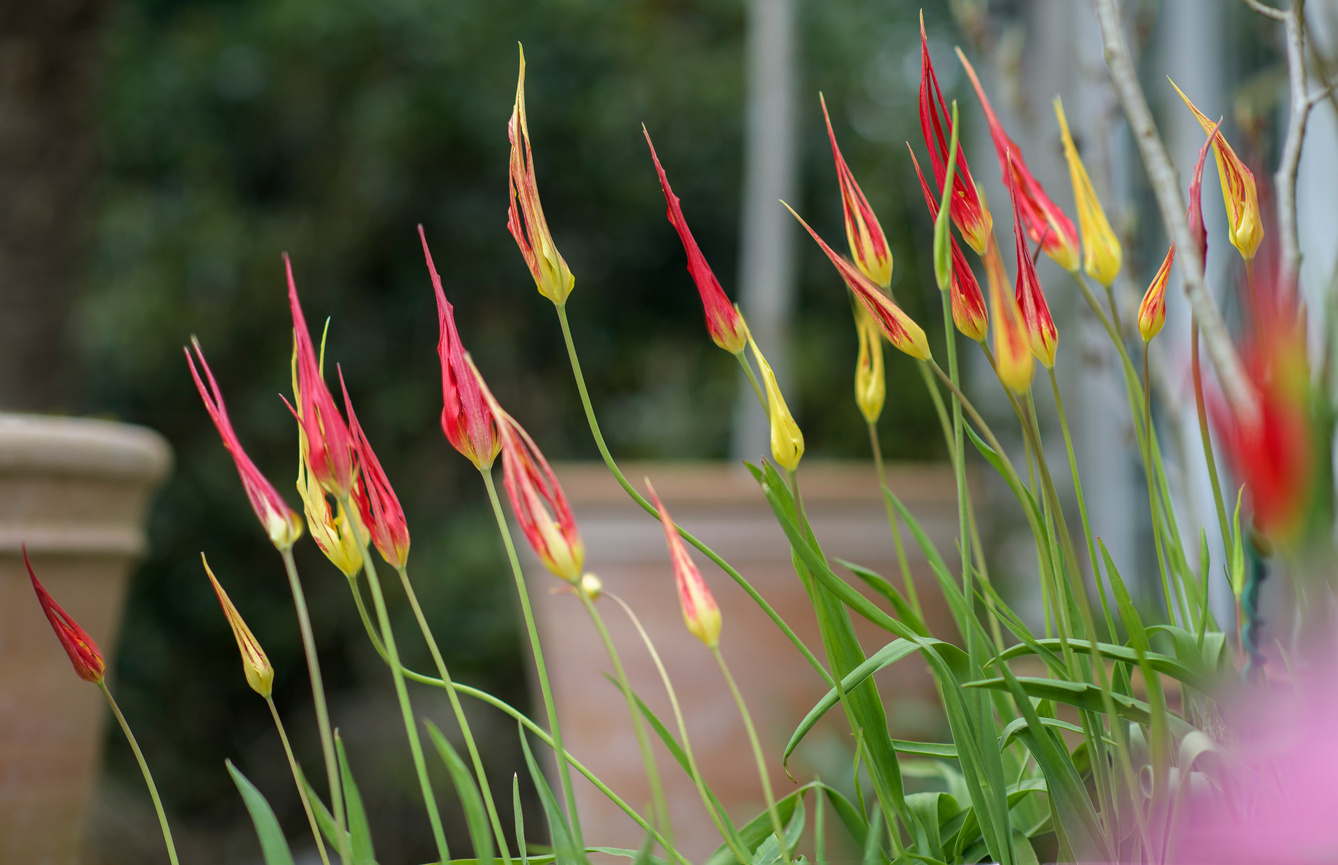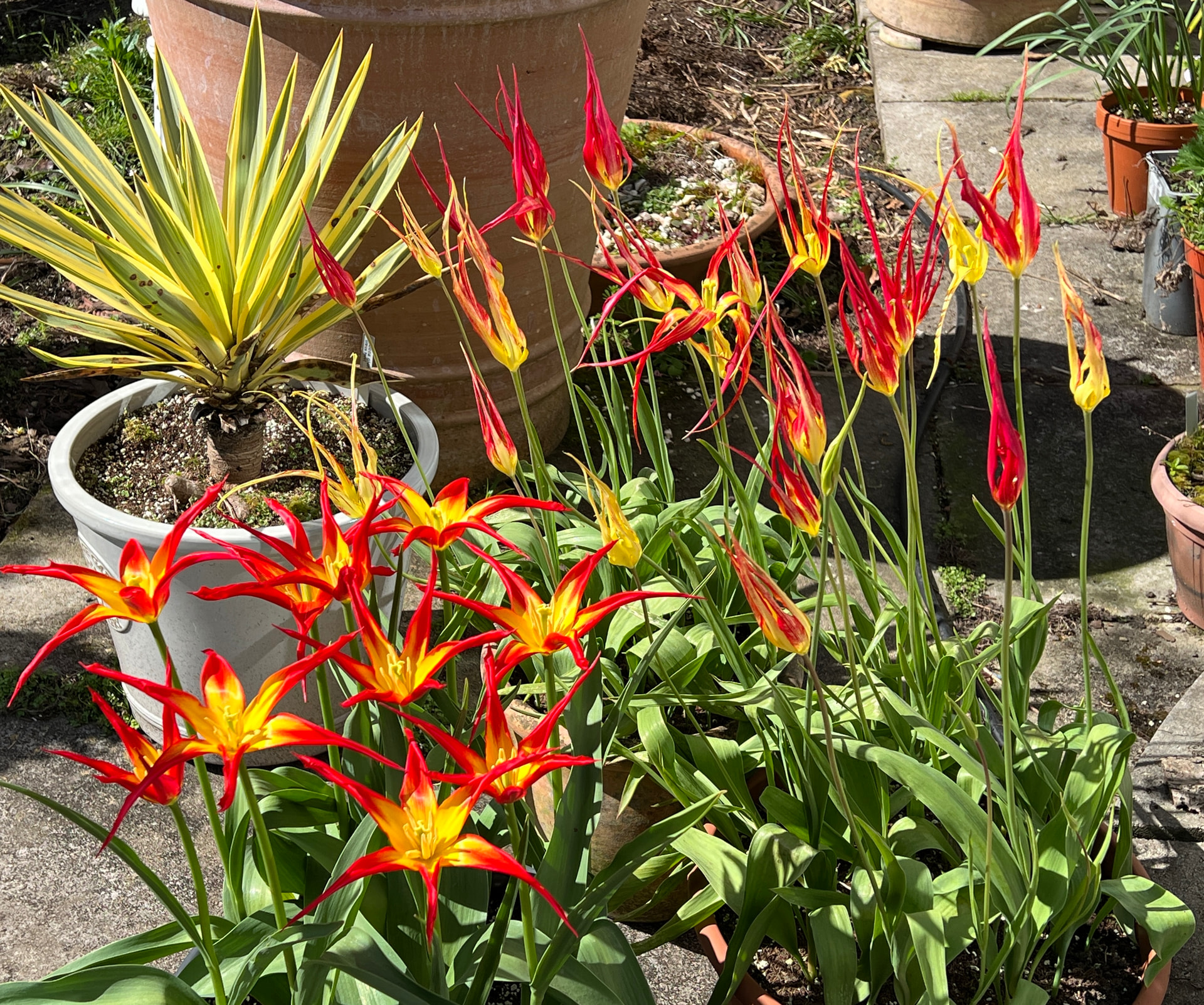 Tulip acuminata comes up reliably every year. Getting too many of them now. Look great even when they’re closed.
