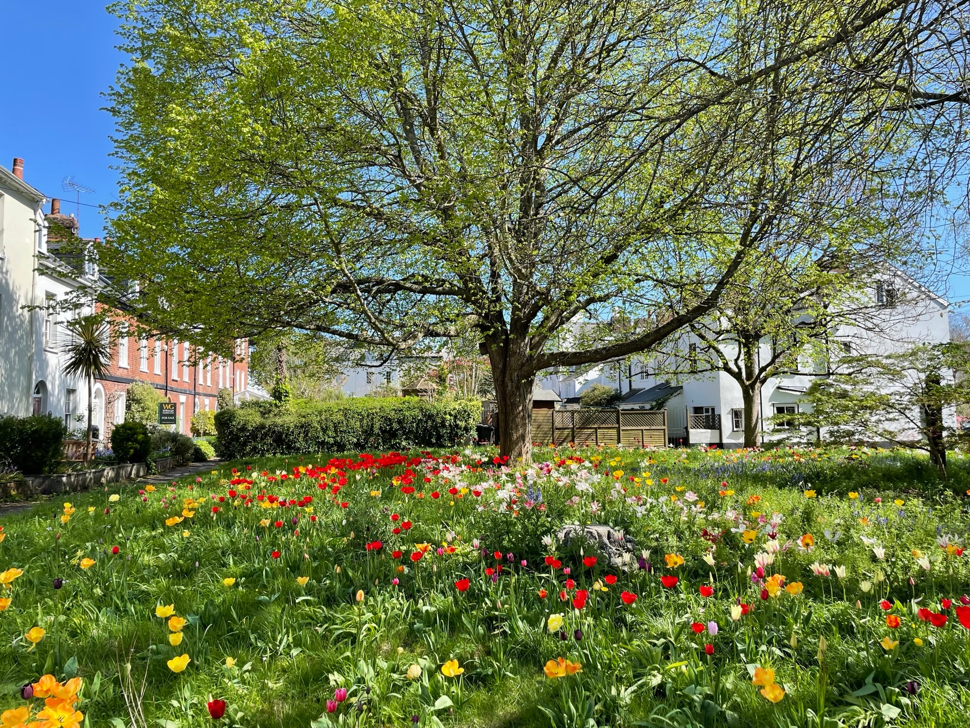 In addition to the acers in the middle bed, the large trees on the Green are waking up – the first to leaf is always the lime, followed by the silver birch and the ash.